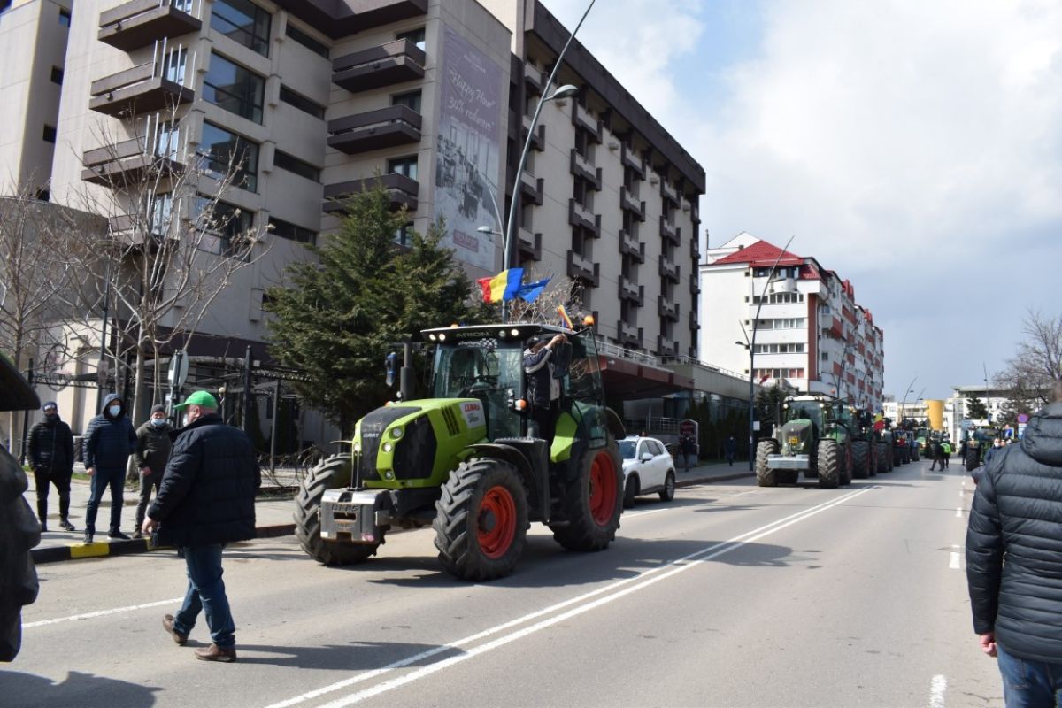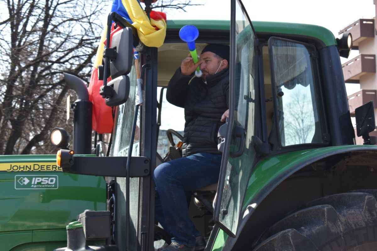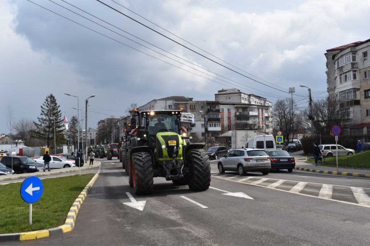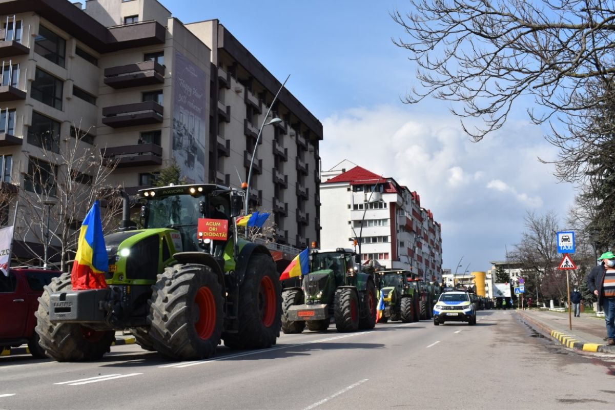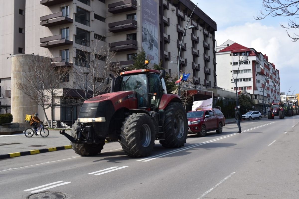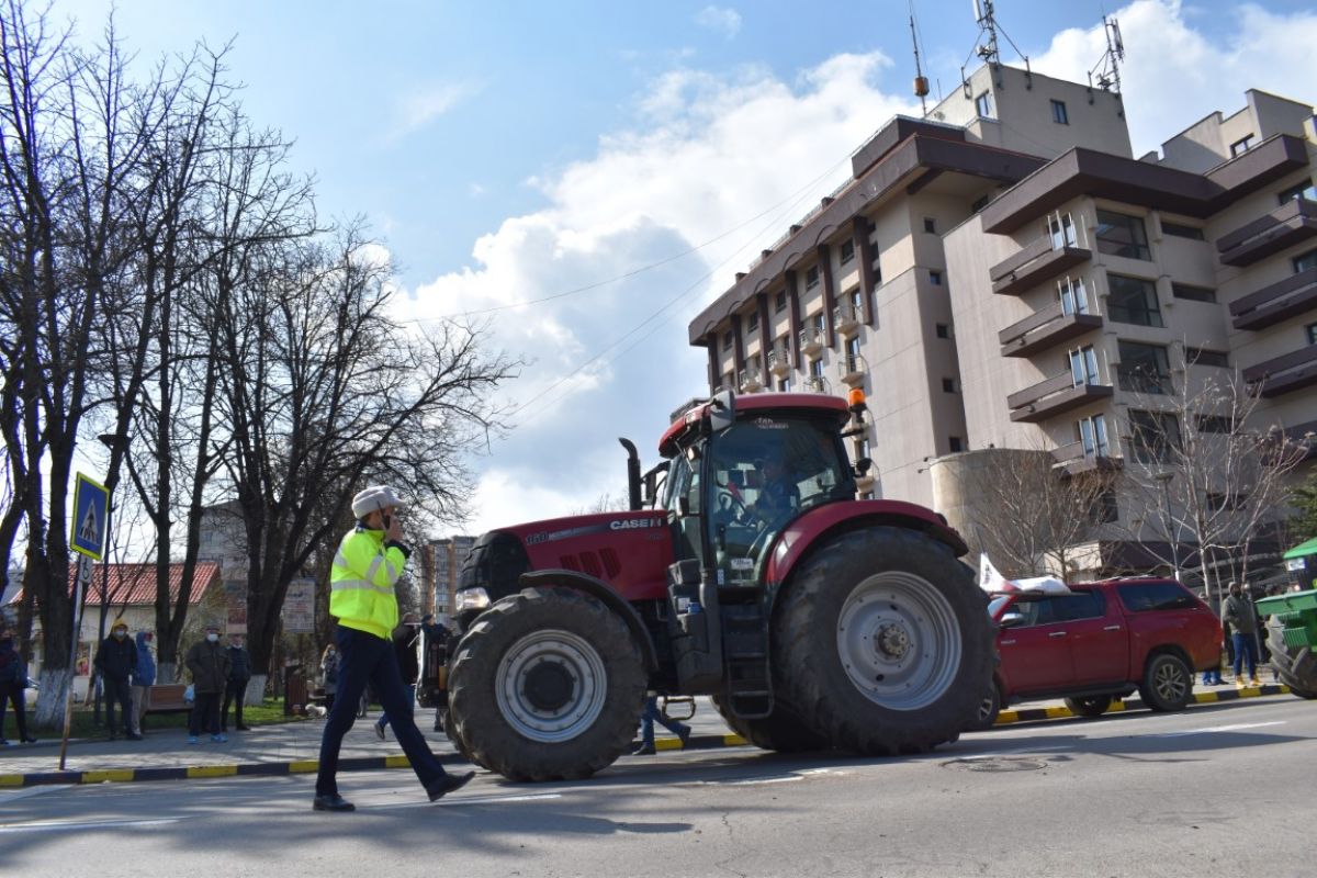 De pe trotuare, imaginea oferită a fost una de paradă. Tractoare cu roți înalte cât statura medie a unui om „împodobite” cu Drapelul Național și tot felul de pancarte cu lozinci anti-guvernamentale și mesaje de susținere a agriculturii au mărșăluit prin oraș, urcând pe Împărat Traian și coborând Calea Națională spre centrul orașului.