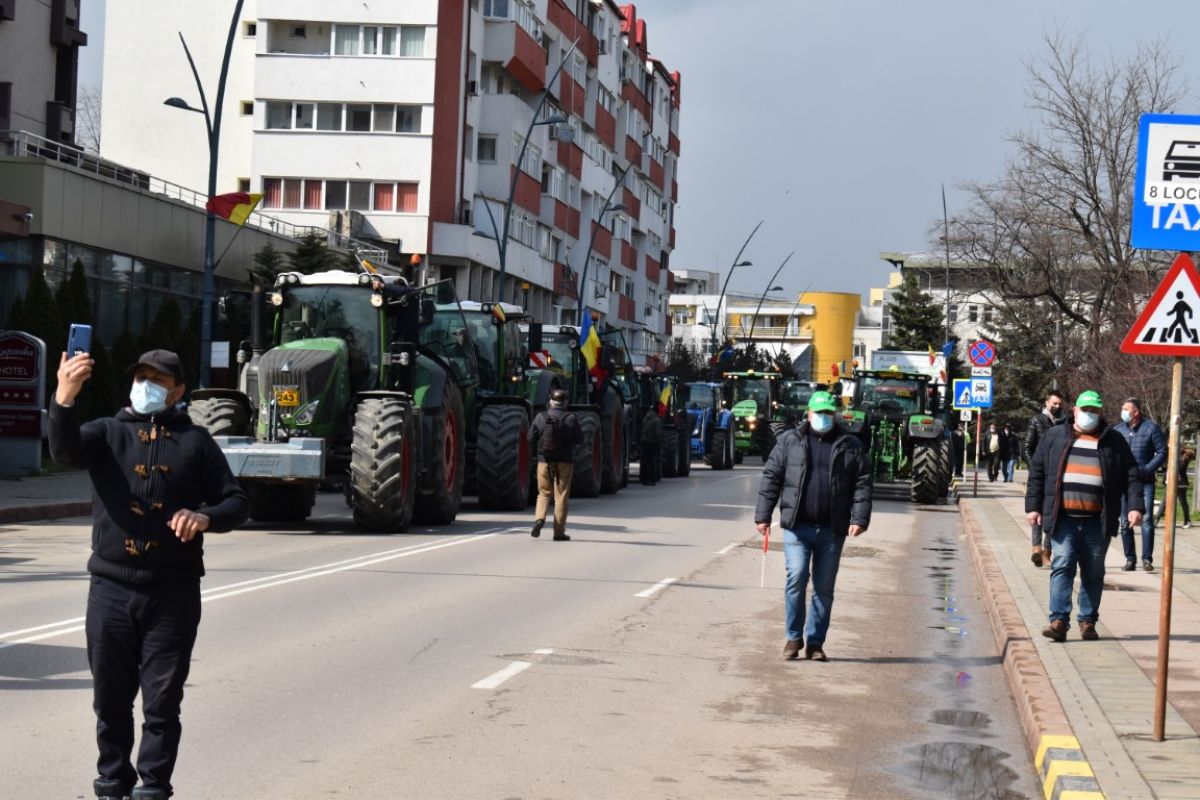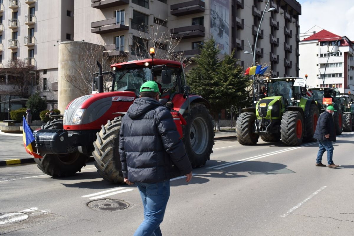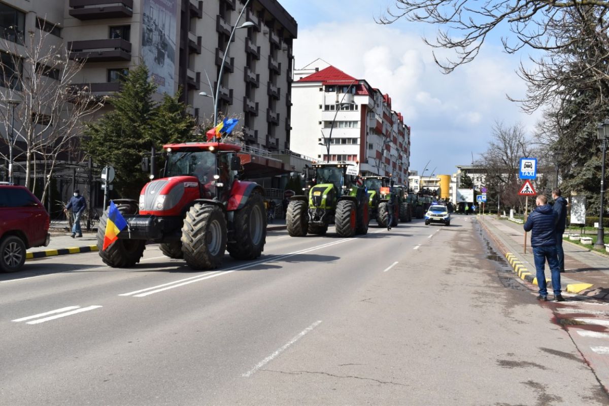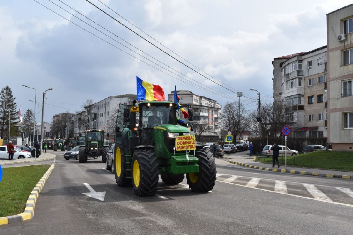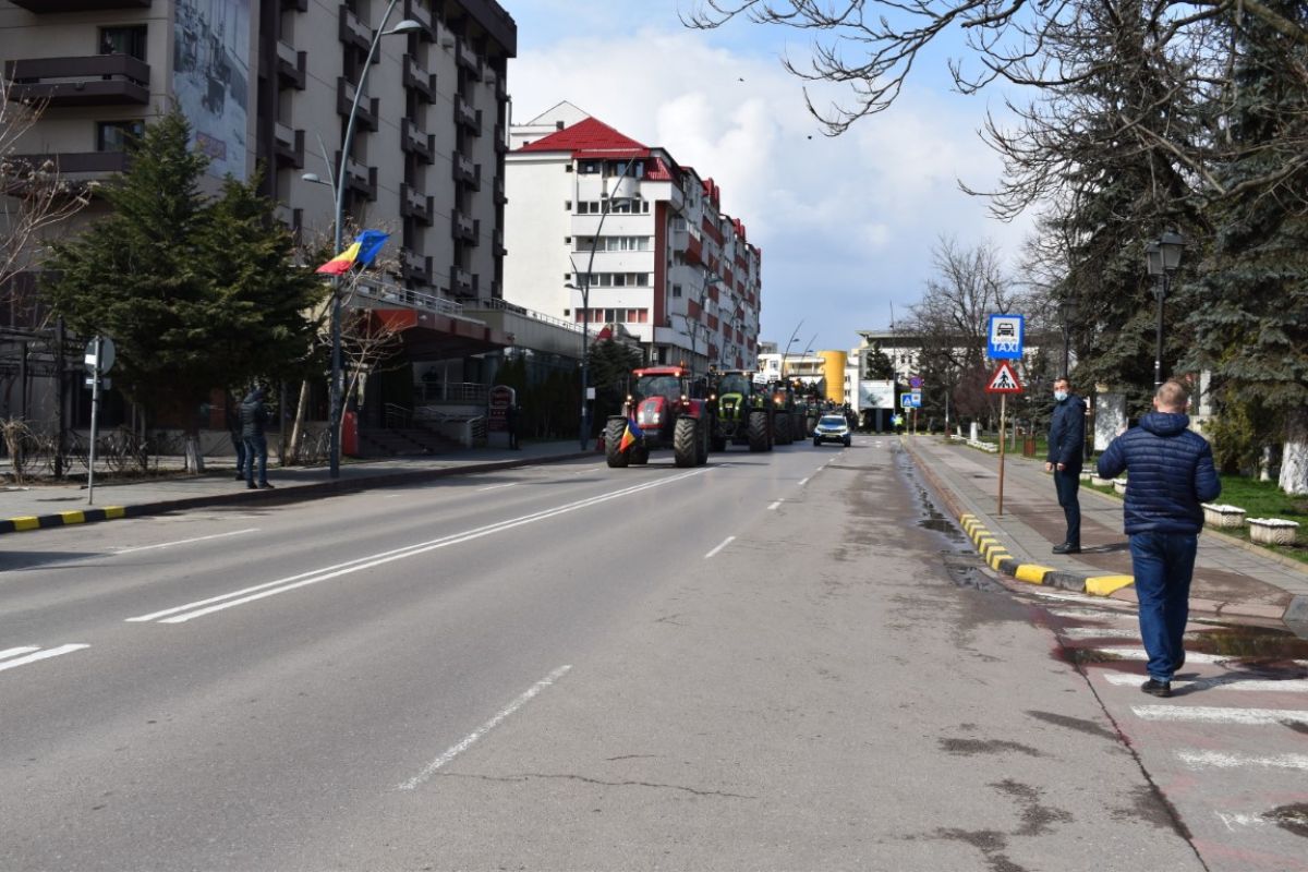 De pe trotuare, imaginea oferită a fost una de paradă. Tractoare cu roți înalte cât statura medie a unui om „împodobite” cu Drapelul Național și tot felul de pancarte cu lozinci anti-guvernamentale și mesaje de susținere a agriculturii au mărșăluit prin oraș, urcând pe Împărat Traian și coborând Calea Națională spre centrul orașului.