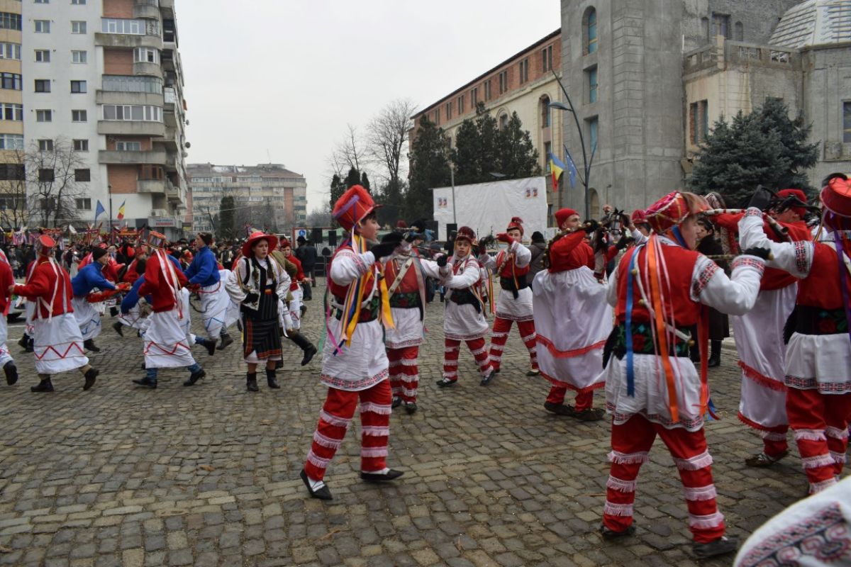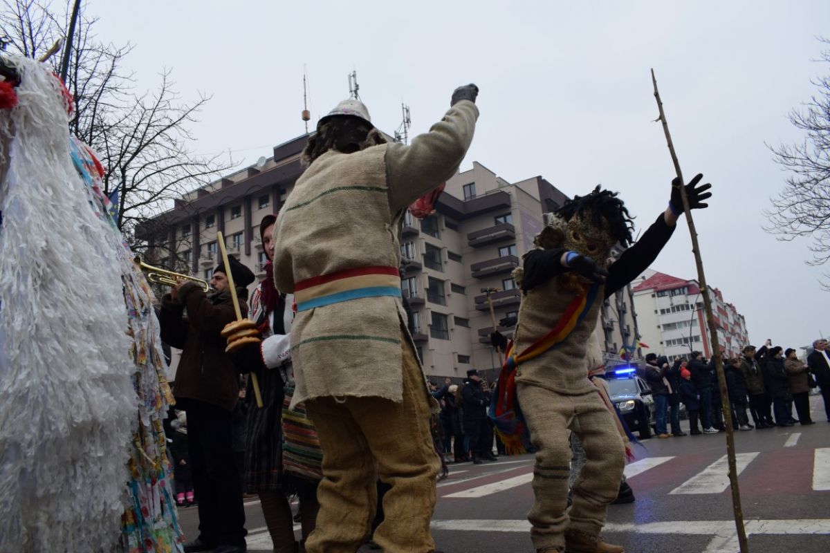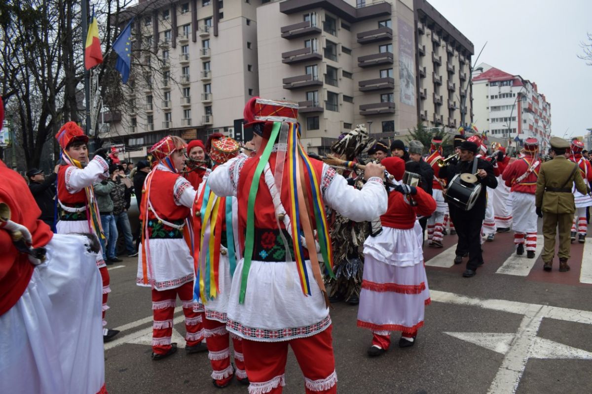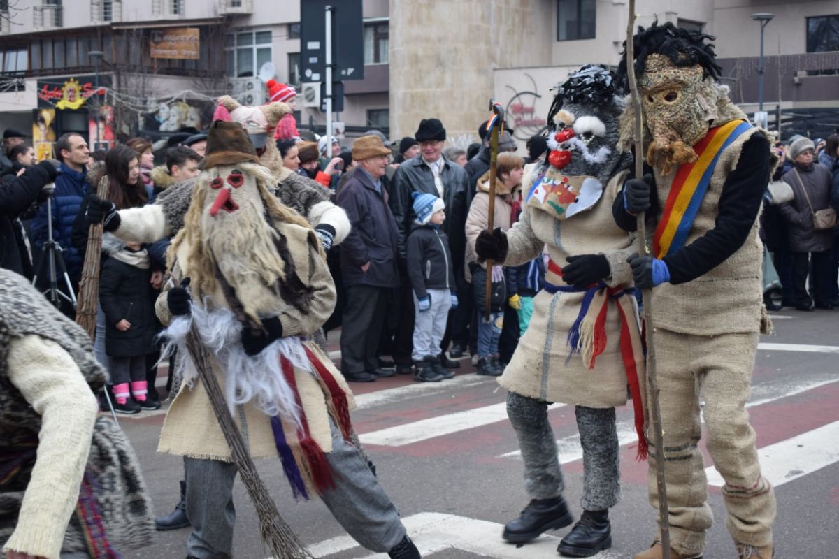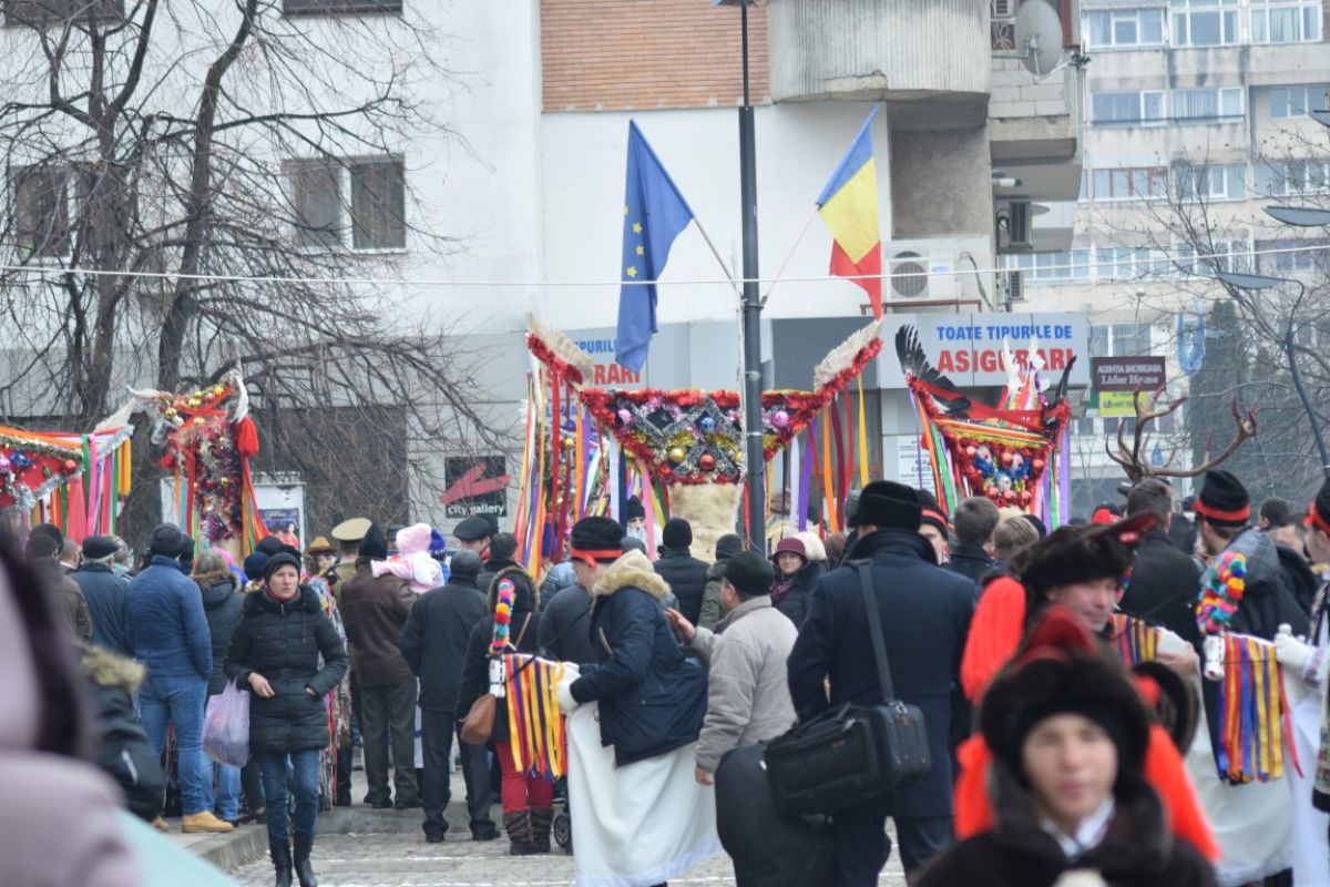 După paradă, formaţiile de datini și obiceiuri de iarnă vor susține sppectacole pe scena amplasată în fața Consiliului Județean.