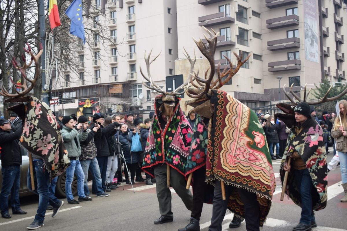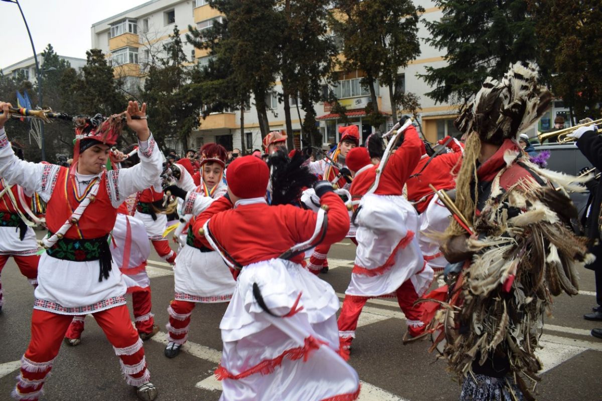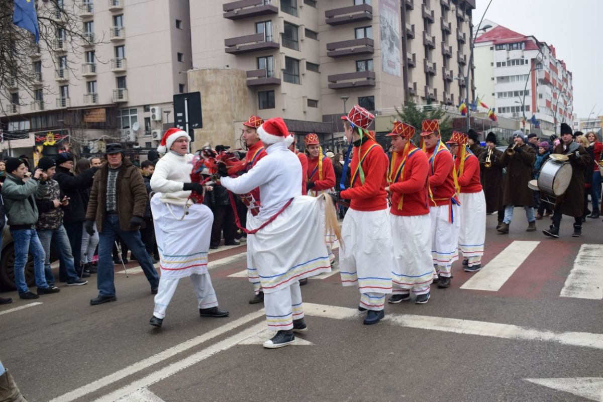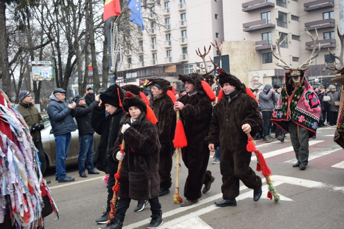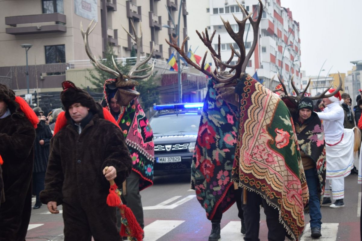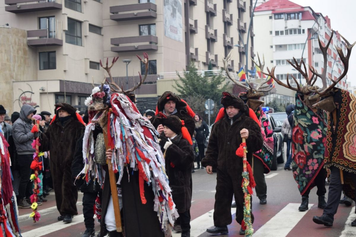 După paradă, formaţiile de datini și obiceiuri de iarnă vor susține sppectacole pe scena amplasată în fața Consiliului Județean.