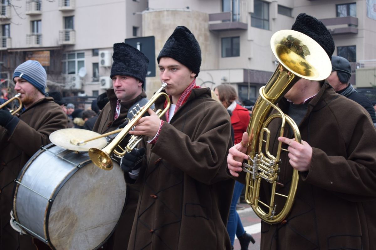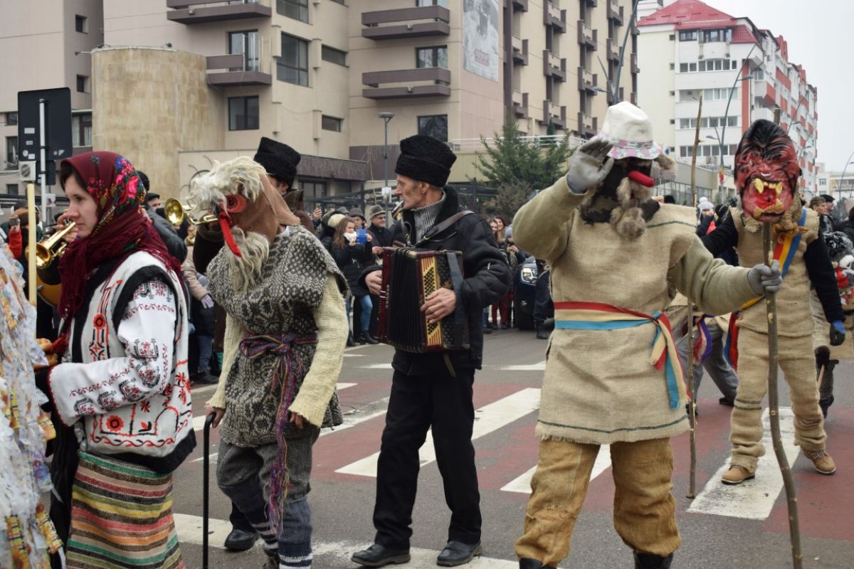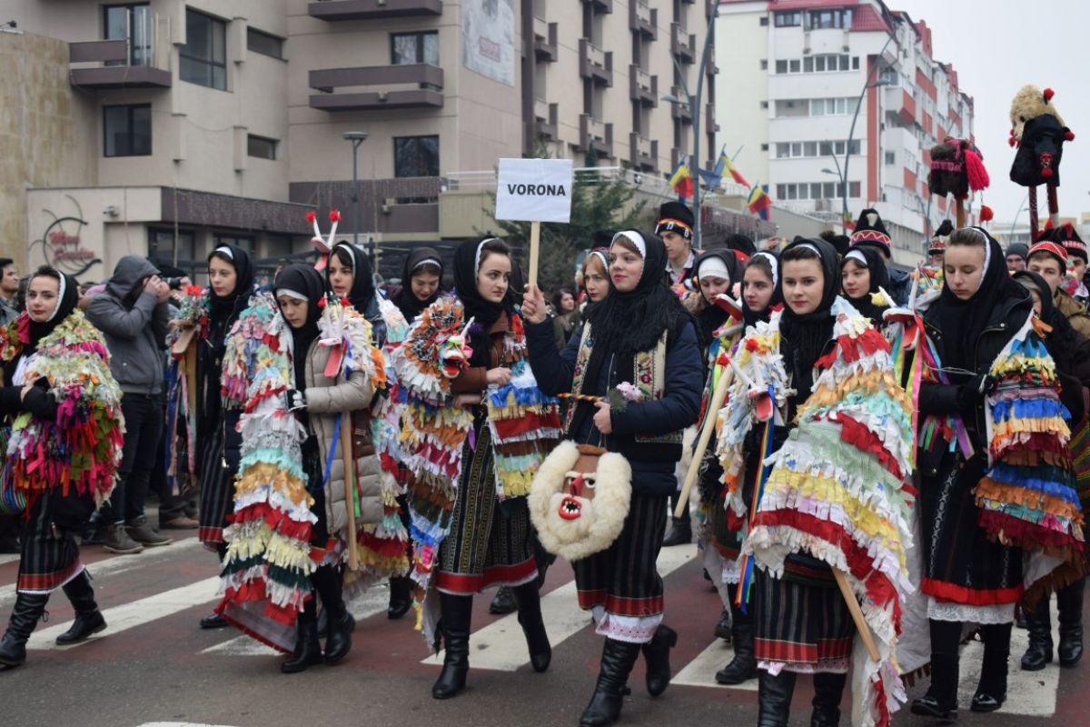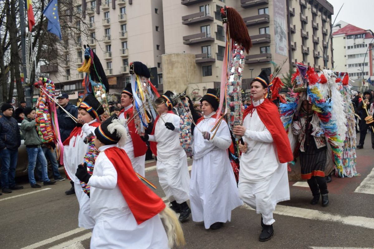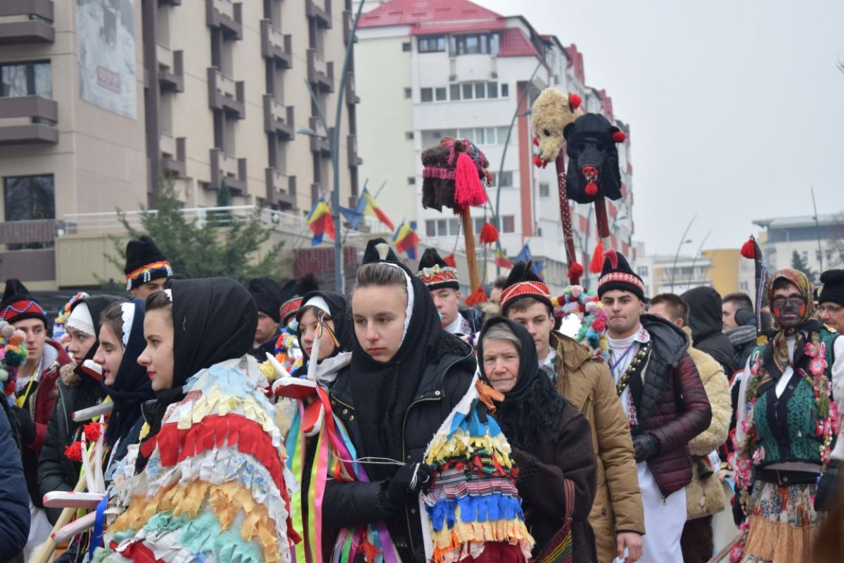 După paradă, formaţiile de datini și obiceiuri de iarnă vor susține sppectacole pe scena amplasată în fața Consiliului Județean.