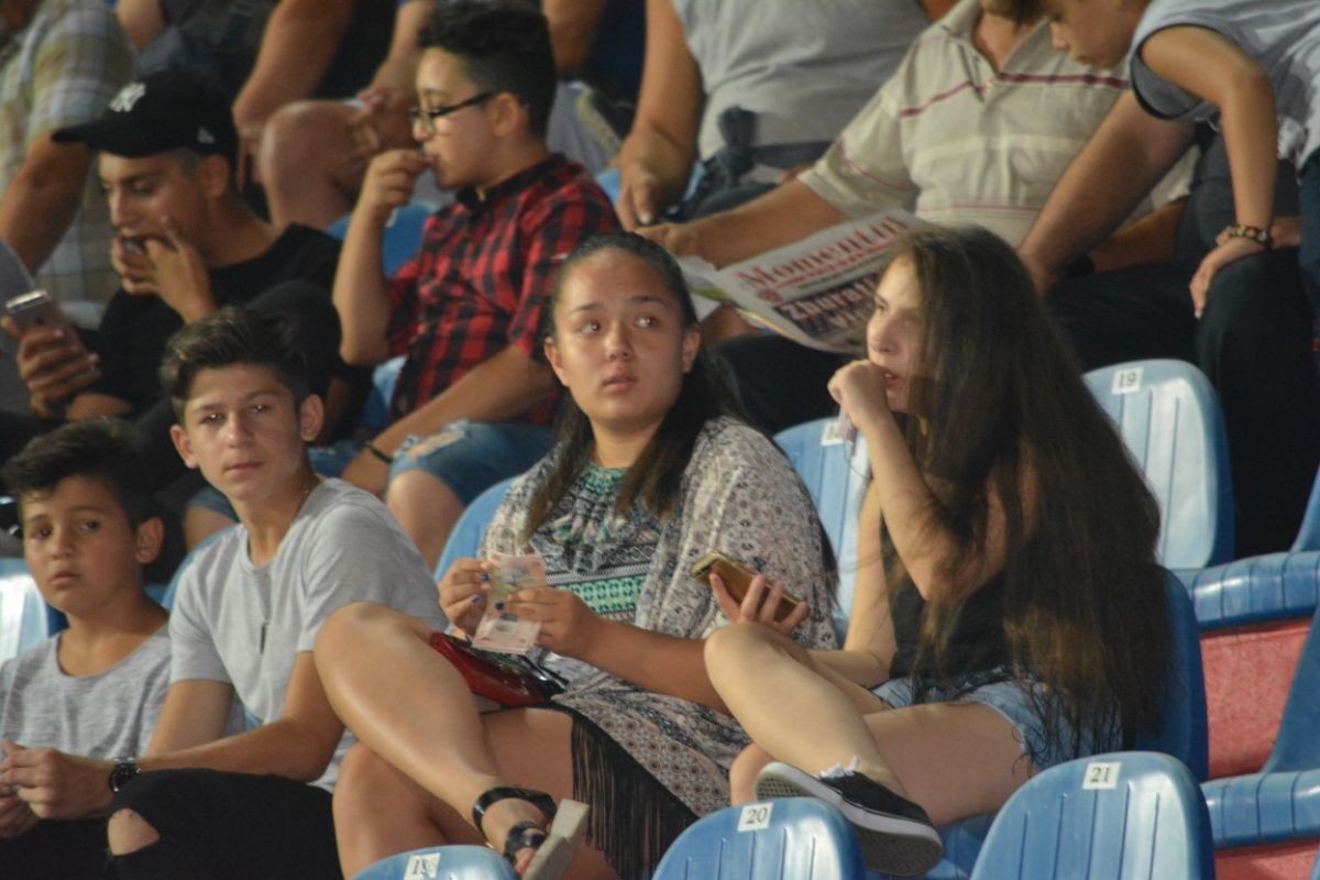 Disputată luni seară, în nocturnă, partida a adunat circa 5.000 de spectatori pe arenă. O bună parte au fost femei, care nu au scăpat prilejul de a-şi etala pantalonii scurţi, dar şi fustiţele de vară. La fel ca la confruntarea cu FCSB, au plătit acelaşi preţ la bilete ca şi bărbaţii, de această dată 10 lei la peluze şi 20 de lei la tribune. Fetele nu lipsesc nici din galerie, unde îşi încurajează cu cerbicie favoriţii.