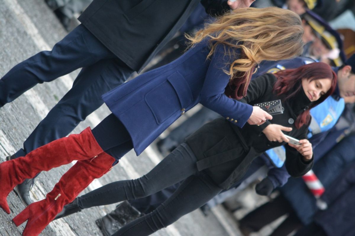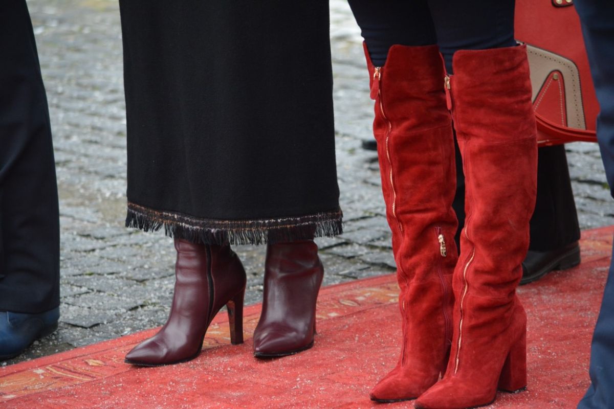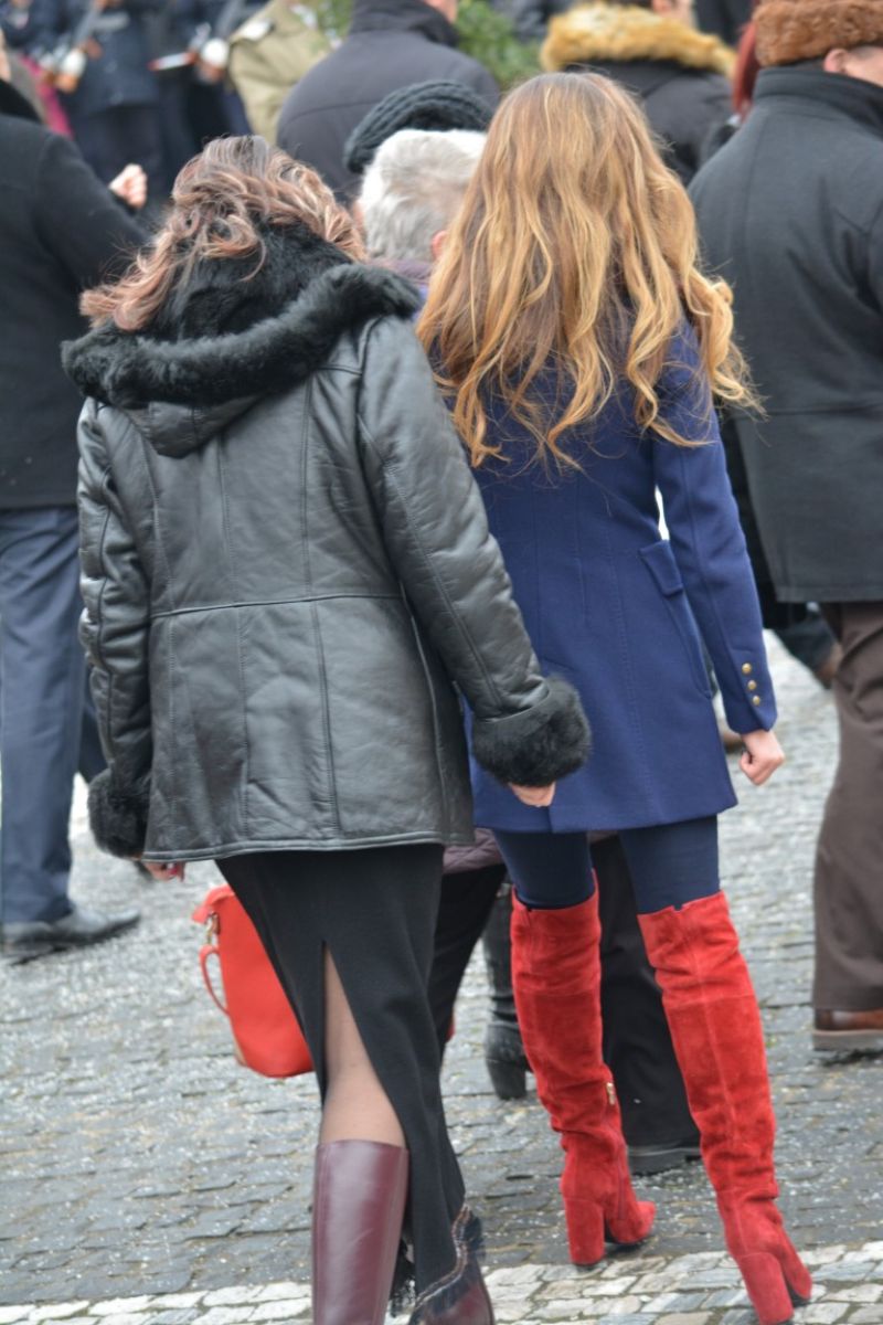 Din nou, au predominat cizmele lungi, unele deasupra genunchiului, botinele sau paltonașele elegante și eșarfele colorate. Majoritatea femeilor din politică sau administrație au optat să iasă din casă cu capul descoperit pentru a nu-și strica coafurile.