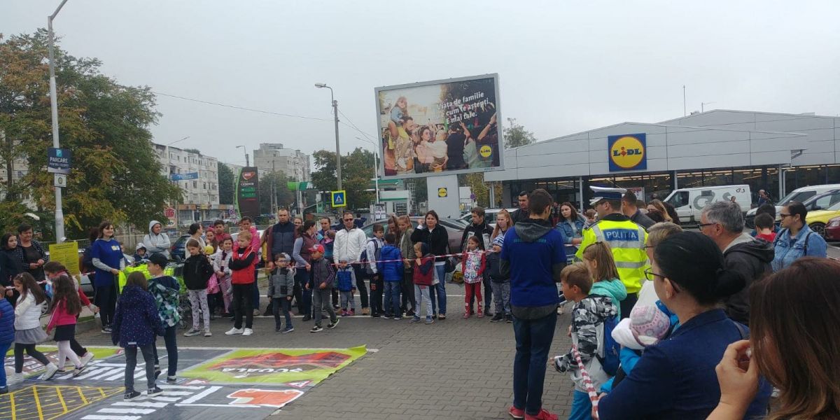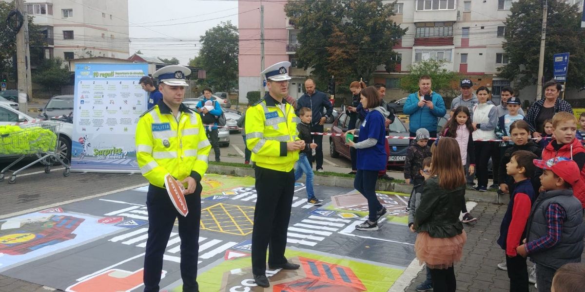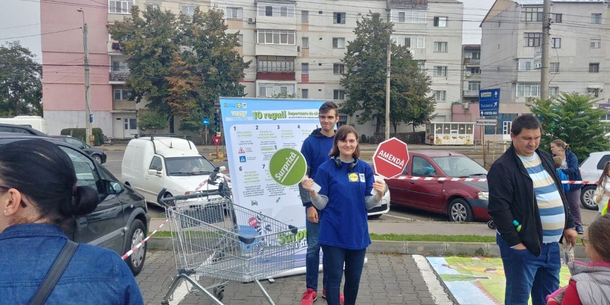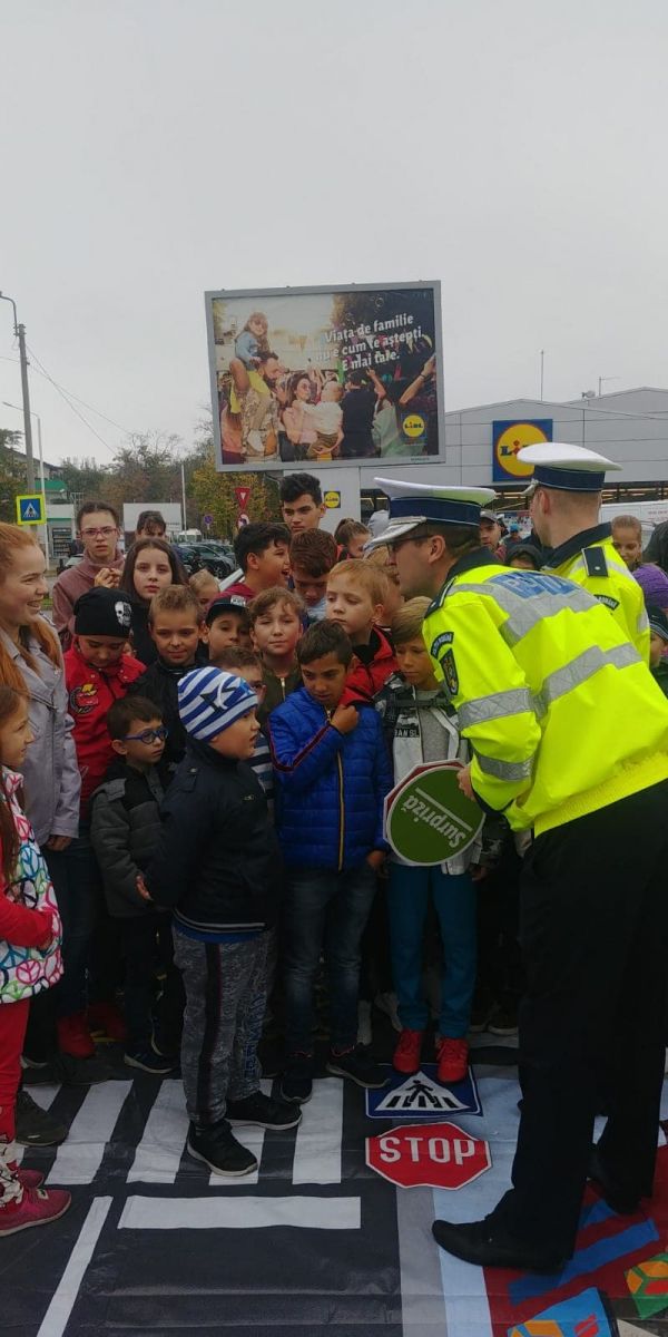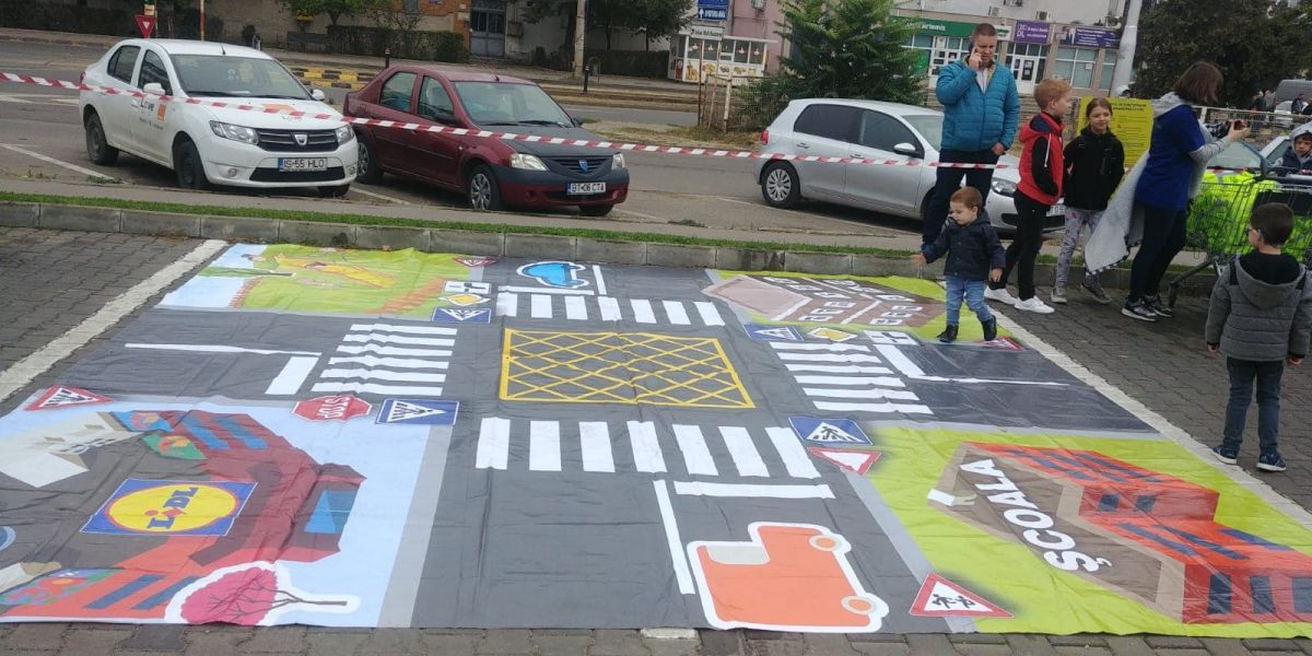 În județul Botoșani, activitățile s-au desfășurat in parcarea magazinului LIDL și au constat în lecții interactive de educație rutieră.