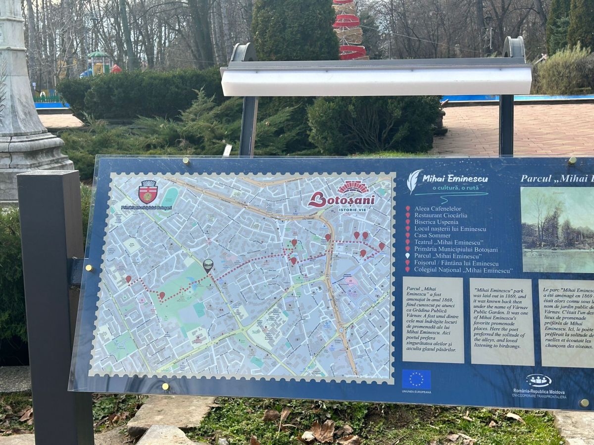 De asemenea, în cadrul proiectului au fost amplasate totemuri și sunt inclusiv două monitoare pentru prezentare de informații. Șapte totemuri pentru semnalizarea Parcului Mihai Eminescu prezintă harta întregului spațiu, cu evidențierea aleii pe care sunt amplasate.