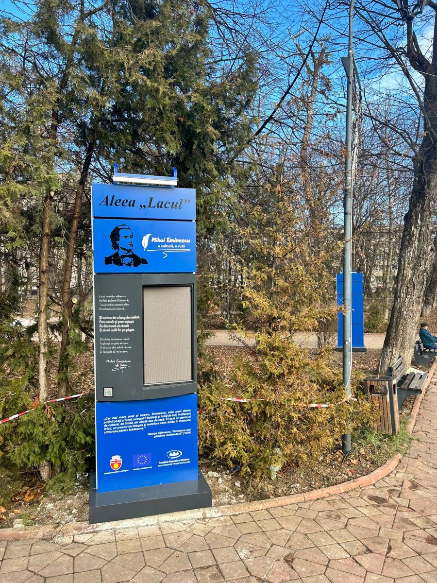 În cadrul aceluiași proiect au fost amplasate 100 de bucăți de plăci din piatră naturală pe care au fost inscripționate cele 98 de strofe ale poeziei „Luceafărul”.