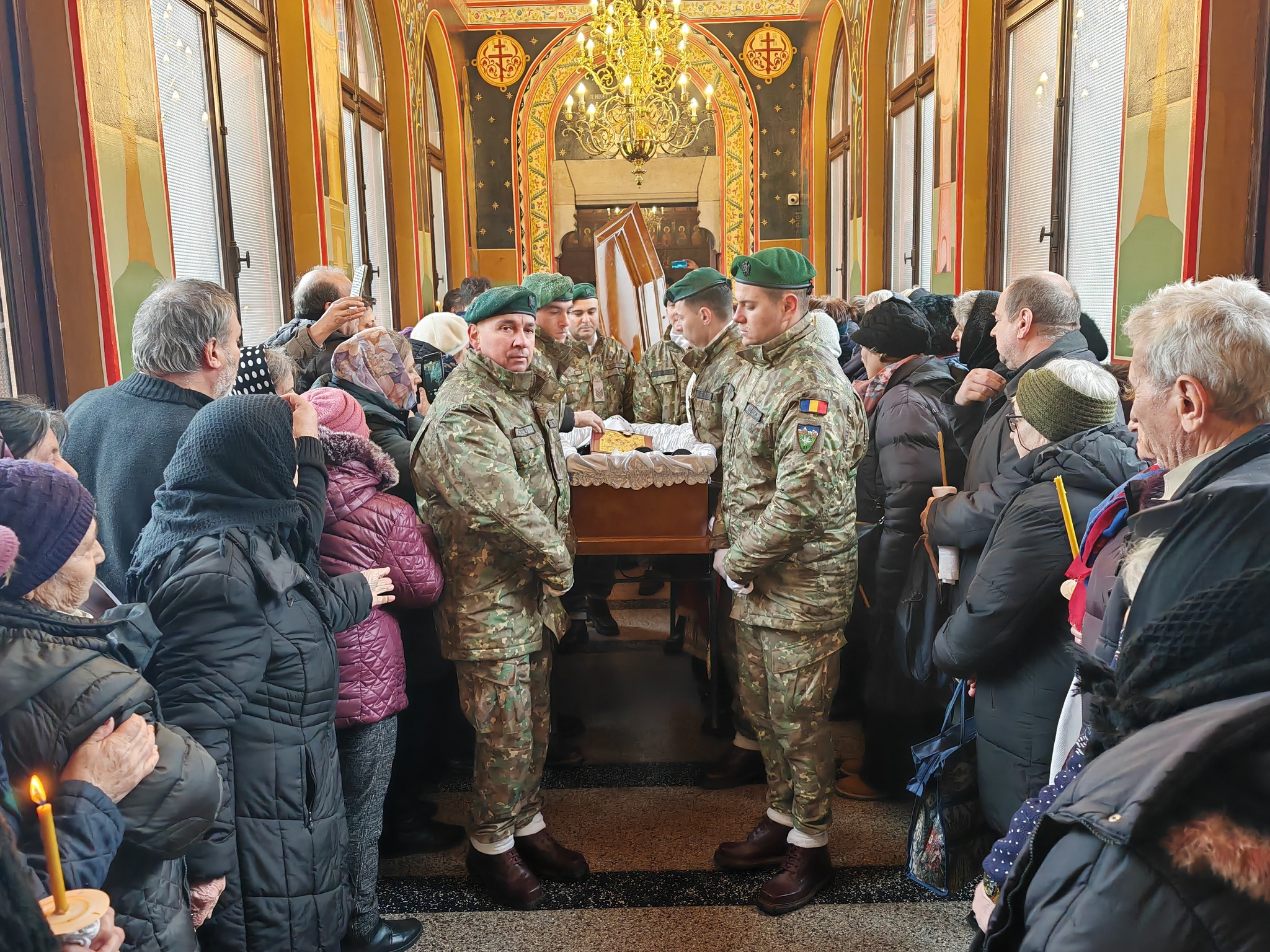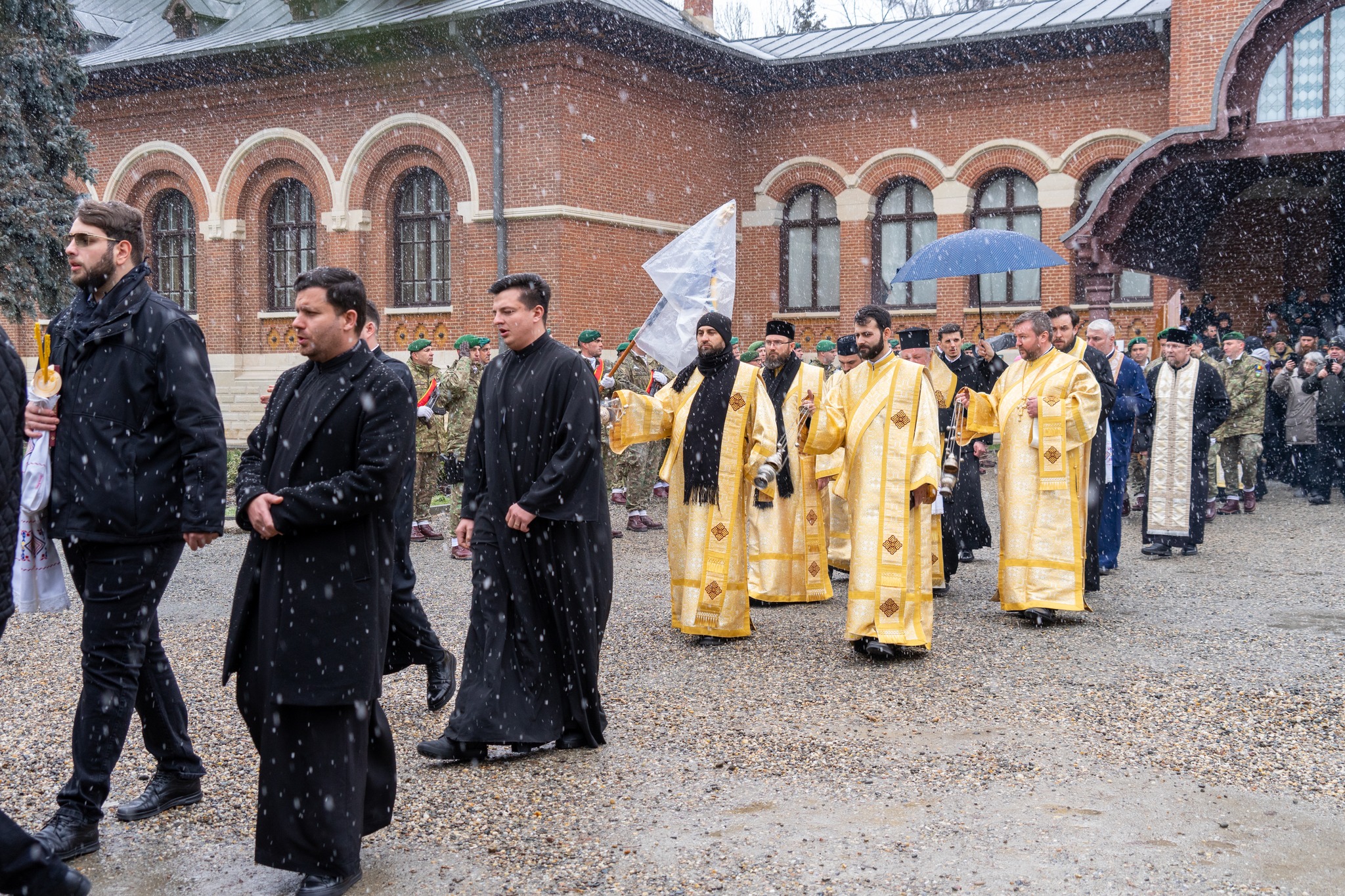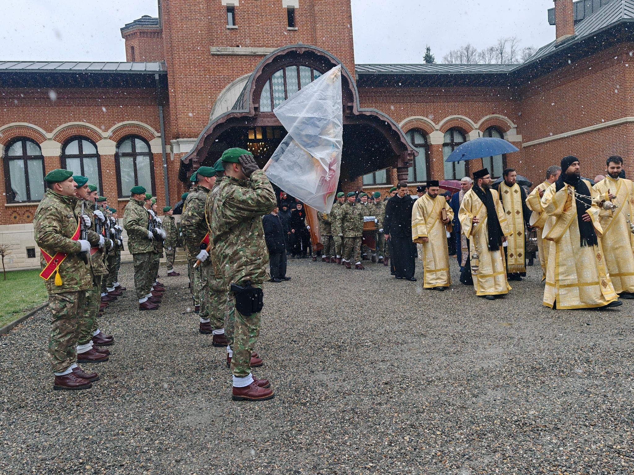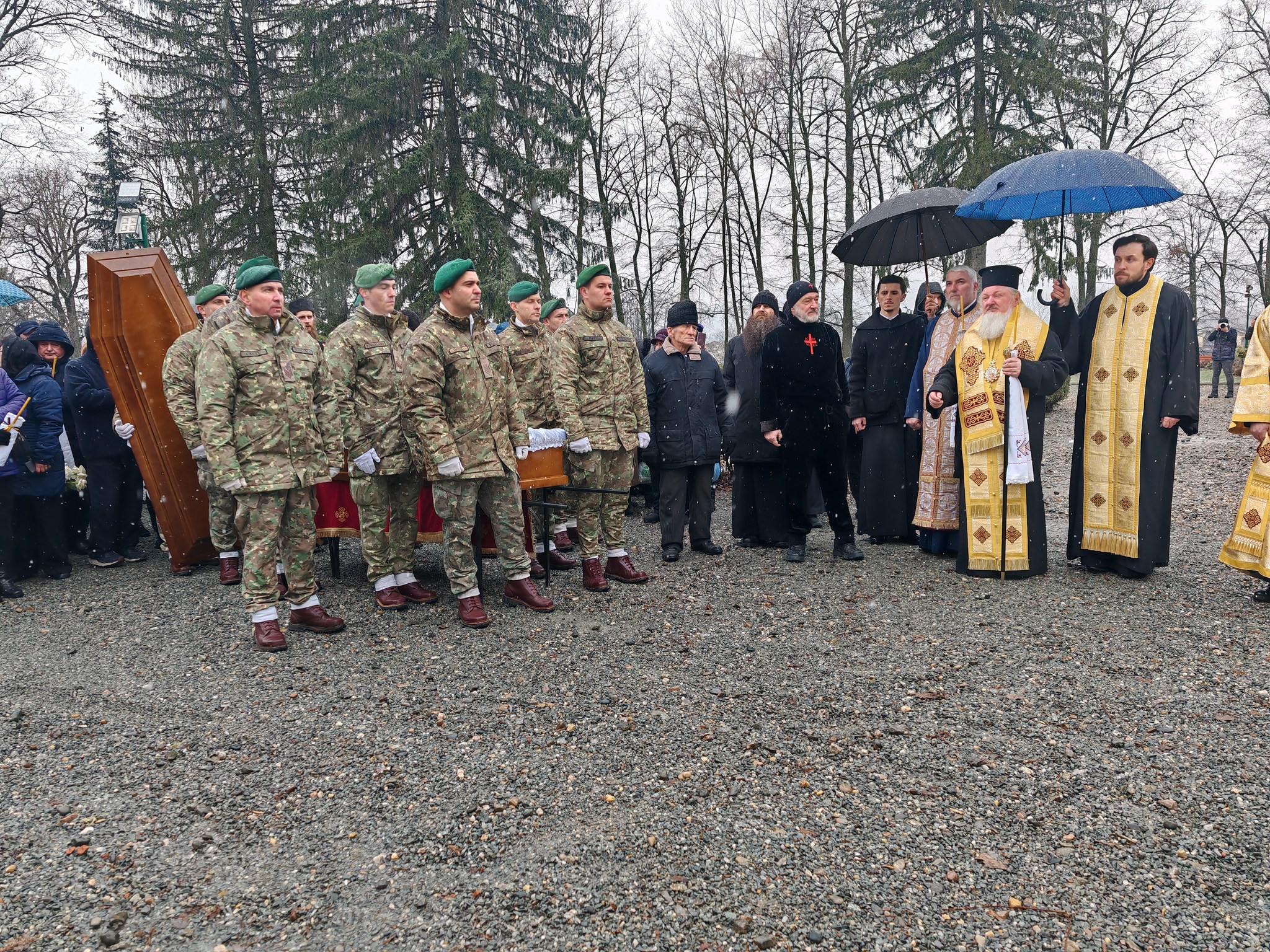 Părintele arhimandrit din Botoșani condus pe ultimul drum, sicriul purtat de militari