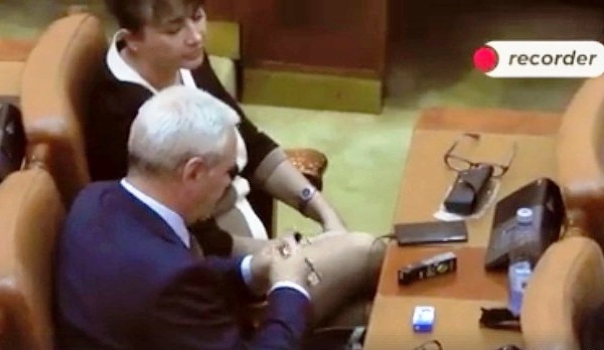 Iar printre actorii principali se regăsesc Liviu Dragnea şi Tamara Ciofu. Cei doi au fost filmaţi într-o bancă din Legislativ mâncând dulciuri chiar în timpul dezbaterii moţiunii de cenzură la adresa Cabinetului Grindeanu.