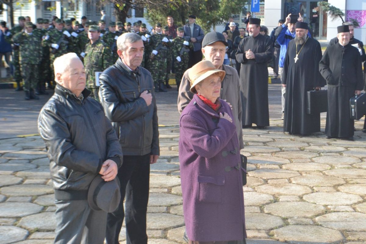 Nici la ceremonialul de depunere a coroanelor de flori la Monumentul Eroilor căzuți în cel de-al Doilea Război Mondial, prezența participanților nu a fost una însemnată.