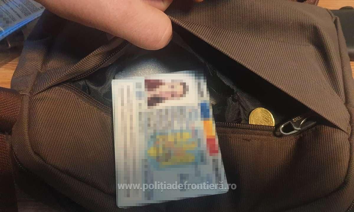 În baza profilului de risc, s-a procedat la efectuarea unui control amănunţit asupra persoanei, ocazie cu care, în căptușeala borsetei acestuia a fost descoperită ascunsă o carte de identitate cu însemnele autorităţilor române, având imprimate datele și fotografia unei alte persoane.