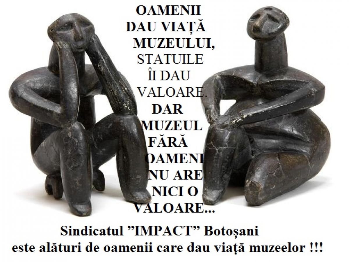 Sindicatul ”Impact” Botoșani demarează cu această ocazie o amplă campanie de conștientizare a existenței acestor categorii profesionale din spatele exponatelor și pentru o salarizare decentă a angajaților din muzee, pentru îmbunătățirea condițiilor de muncă și creșterea calității serviciilor publicului.” se mai arată în comunicatul de presă.