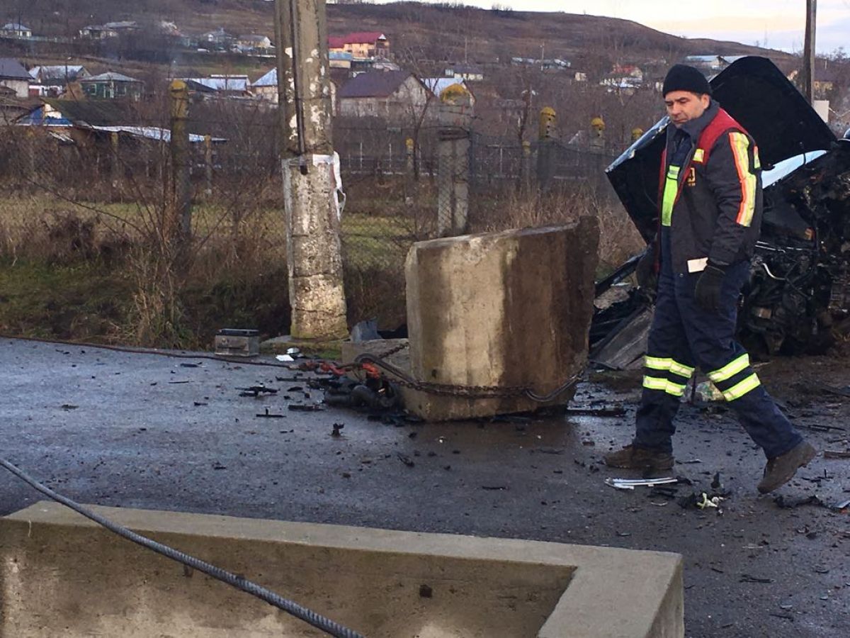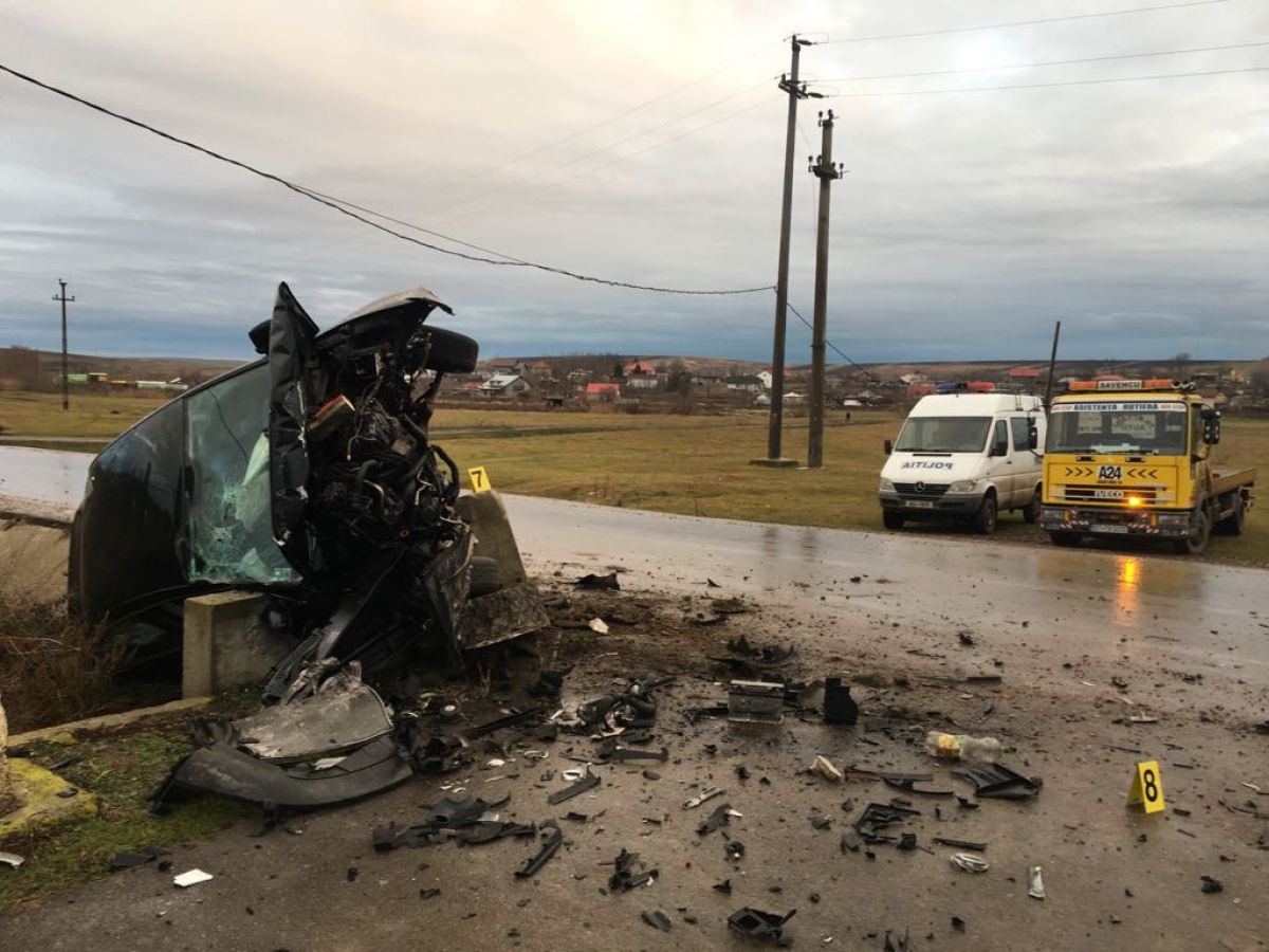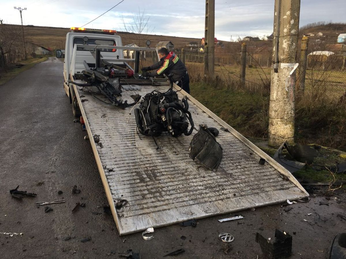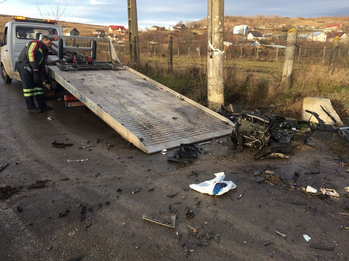 Impactul a fost atât de puternic încât motorul a sărit, iar echipajul SUS Botoșani deplasat la fața locului a luat mașina... pe bucăți.