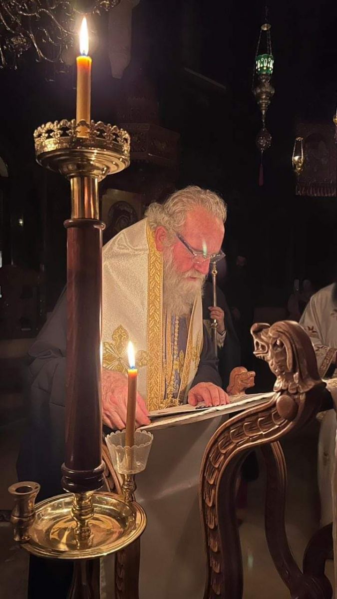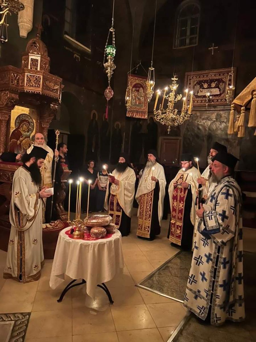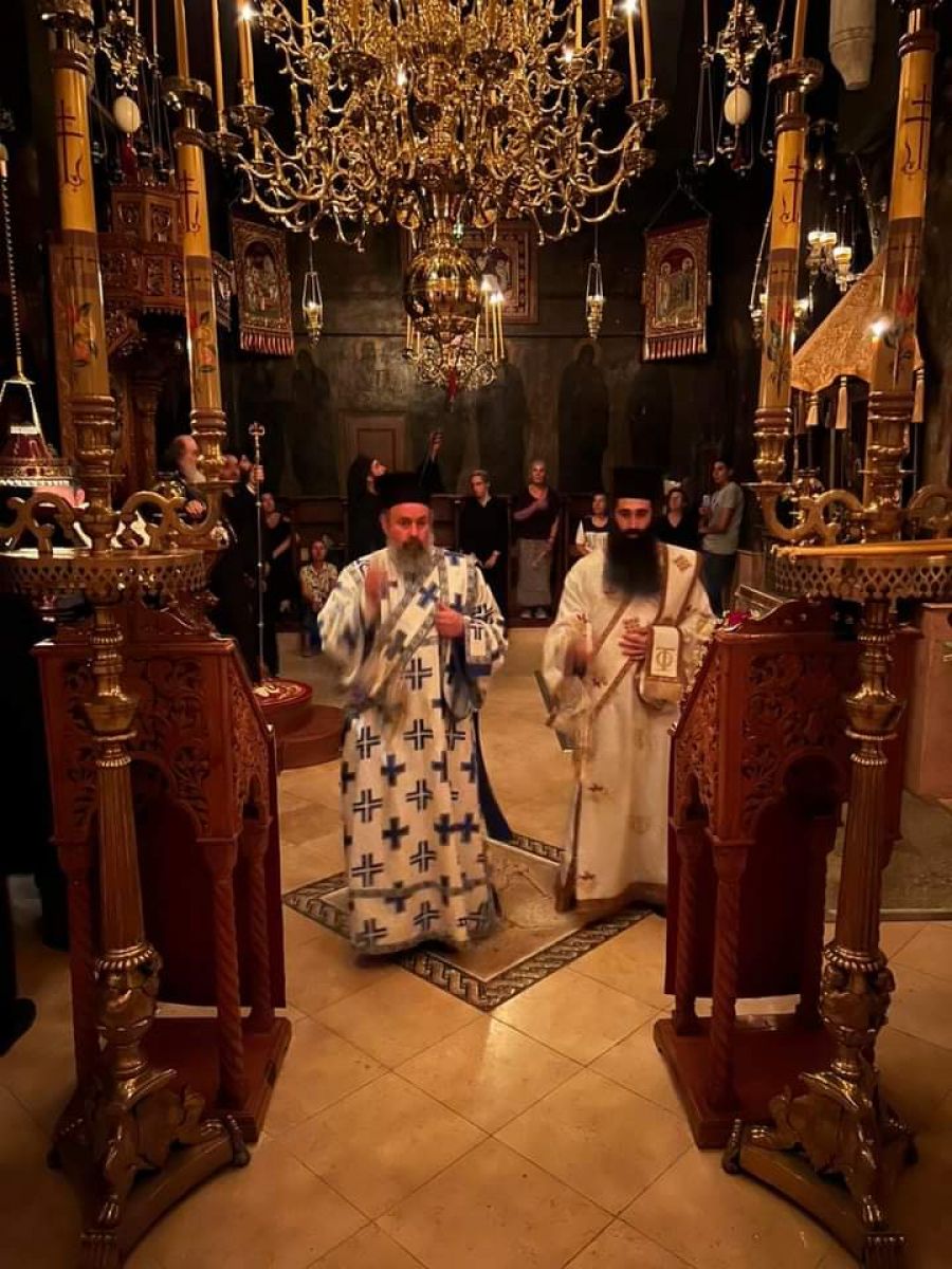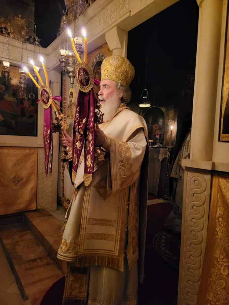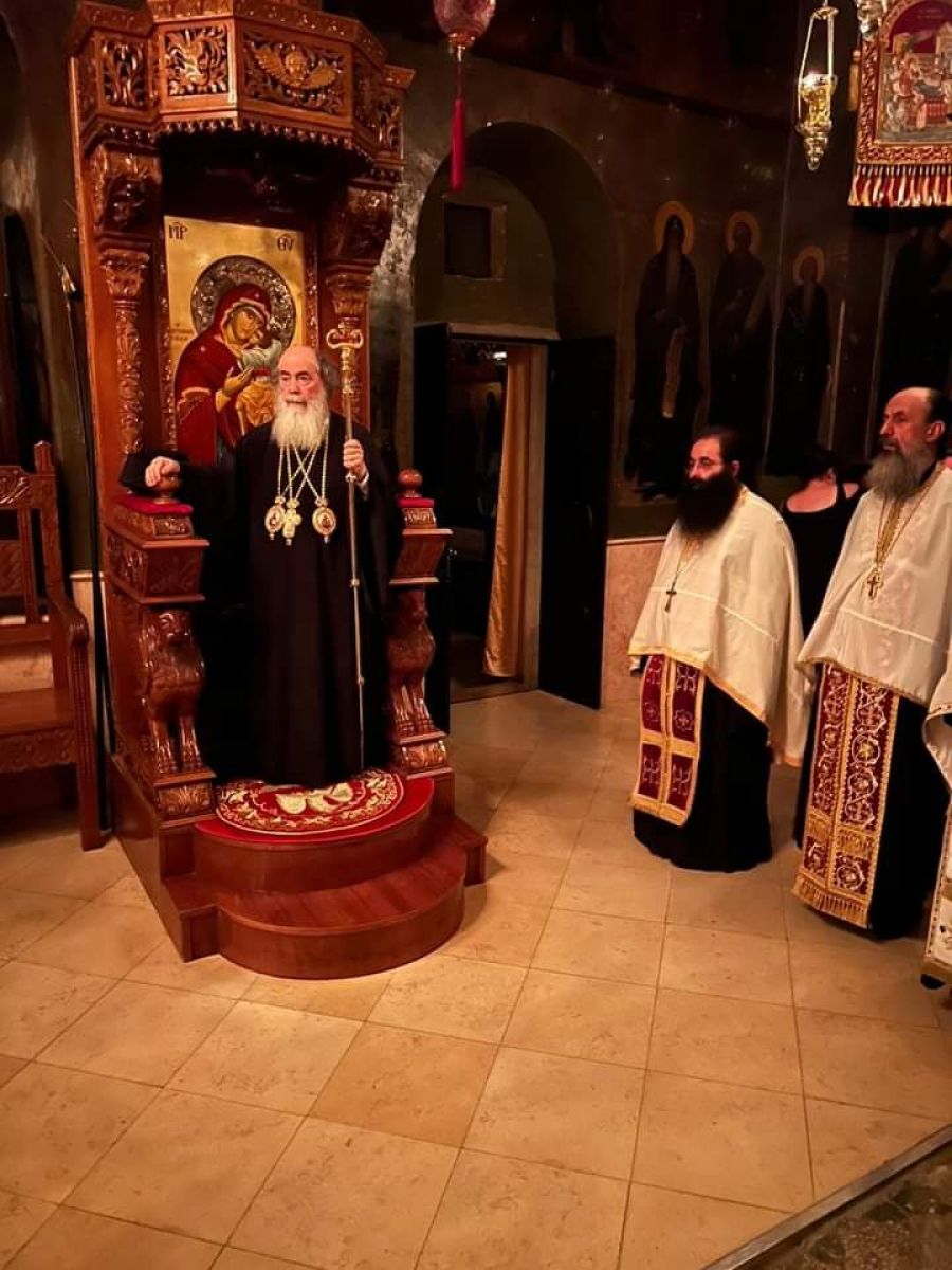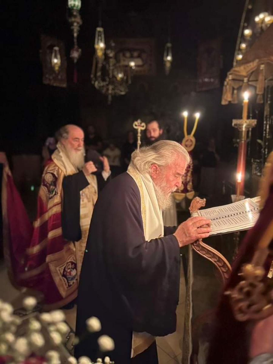 Patriarhul Ierusalimului a slujit la Mănăstirea de la Hozeva alături de Mitropolitul Isihie de Capitoliada și Arhiepiscopul Aristarh de Constantina.