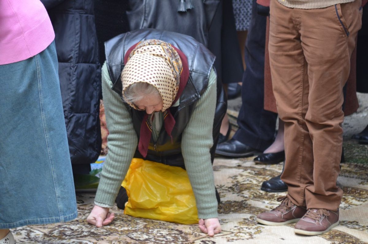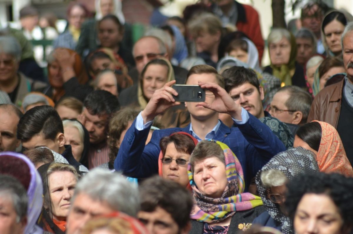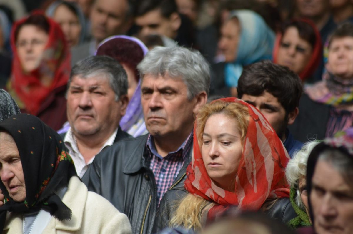 Au venit la Biserica Sfântul Gheorghe mulți oameni. Femei adulte sau copile cu capetele îmbrobodite în basmale, copii ținuți în brațe sau de mânuțe de părinți, bătrâni sau adolescenți. S-a umplut curtea Bisericii de mulțimea pioasă care, într-un sincron plin de smerenie purta mâna dreaptă în semnul Sfintei Cruci. Buzele murmurau neobosite rugăciunile ce erau pornite de la microfon de fețele bisericești și rostite ca un ecou de credincioși.