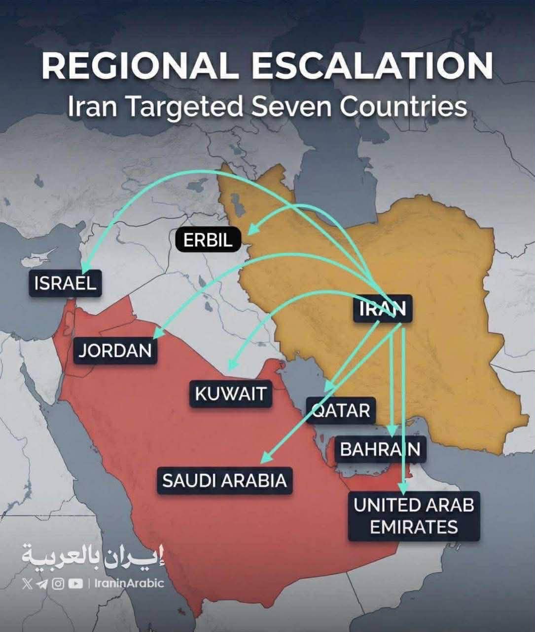 Statele Unite ale Americii și Israel au atacat Iranul pe calea aerului, iar regimul de la Teheran a ripostat violent. Sute de rachete au fost trimise atât spre statul evreu, cât și spre țările în care SUA au baze armate sau cu care au relații bune: Emiratele Arabe Unite (EAU), Qatar, Oman, Bahrein, Kuweit, Arabia Saudită, Iordania și Irak.