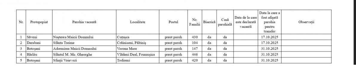 Este vorba despre patru parohii unde sunt posturi vacante.