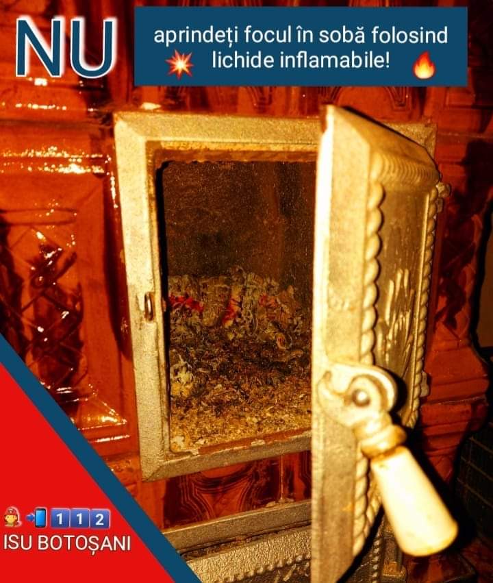Pentru evitarea unor astfel de evenimente, Inspectoratul pentru Situații de Urgență „Nicolae Iorga” al Județului Botoșani recomandă cetățenilor să nu aprindă focul cu benzină, gaz sau alte lichide inflamabile! Își pun viața în pericol, dar și lucrurile pentru care au muncit de-a lungul timpului.