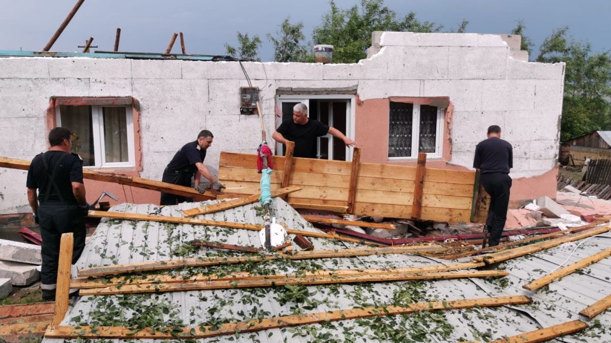 Respectivii locuiau într-o casă din comuna Dângeni care a fost grav afectată de furtuna de astăzi. Vântul puternic le-a decopertat locuința la propriul acoperișul fiind smuls iar tencuiala de pe casă, căzută.