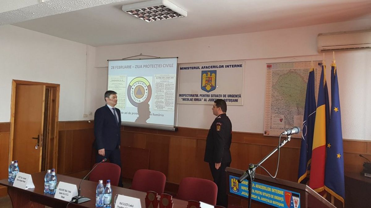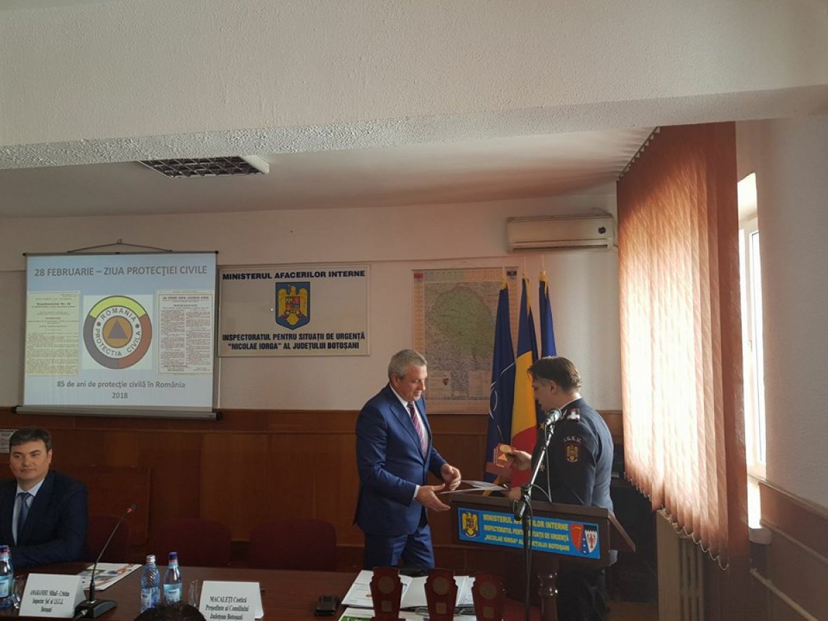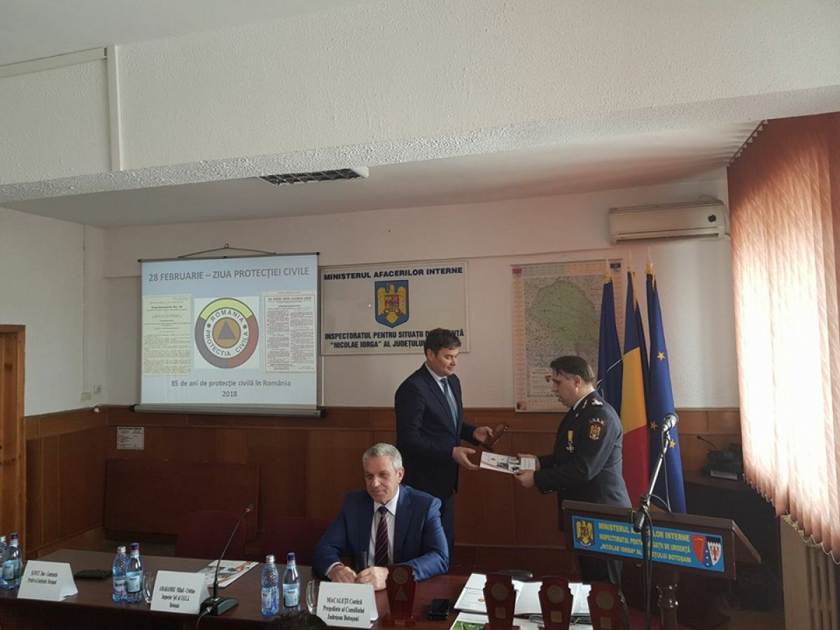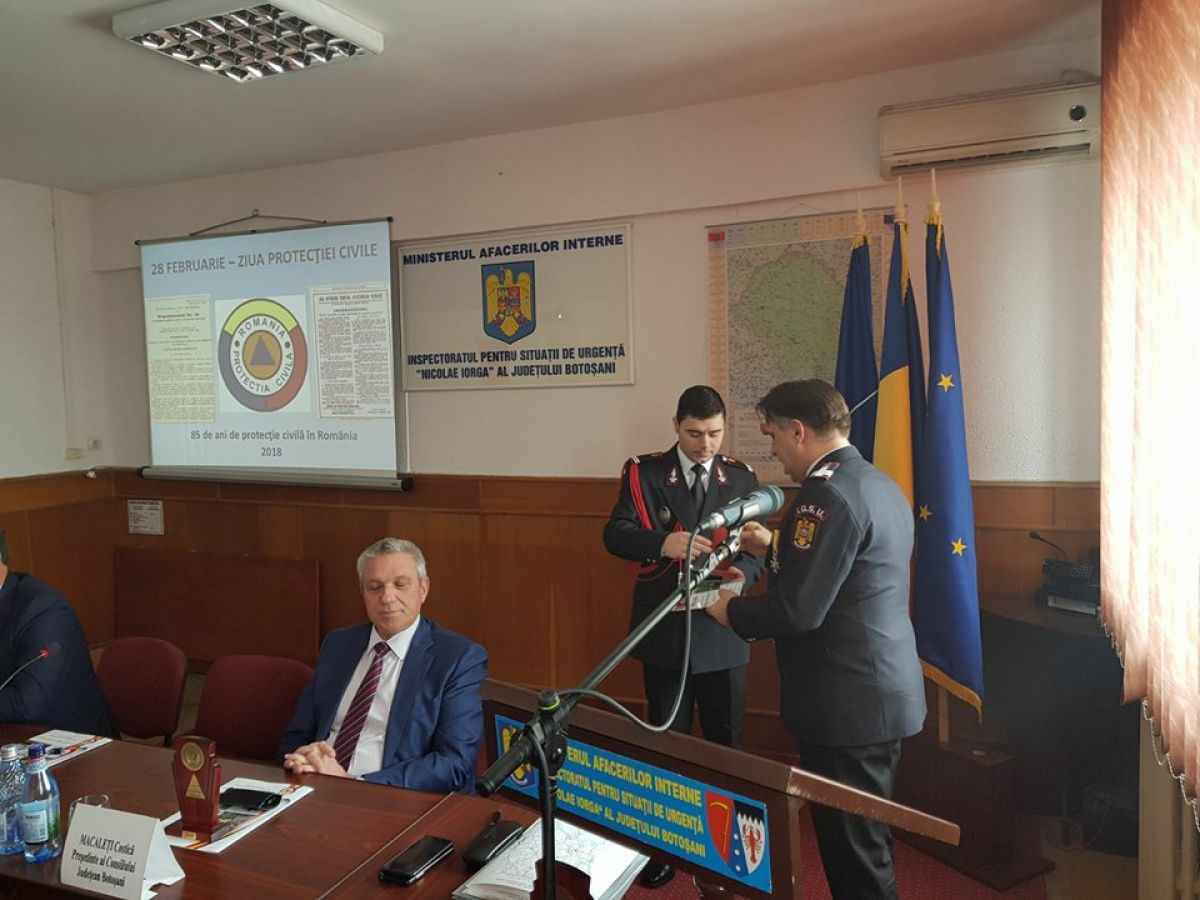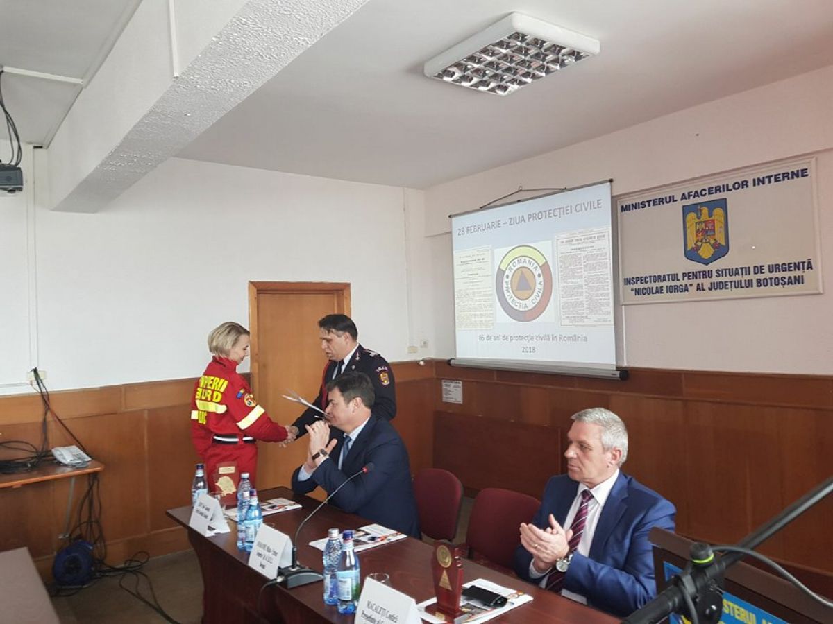 Angajaţii Inspectoratului pentru Situaţii de Urgenţă “Nicolae Iorga” al Judeţului Botoşani au marcat, astăzi, 85 de ani de la înfiinţarea Protecţiei Civile în România.