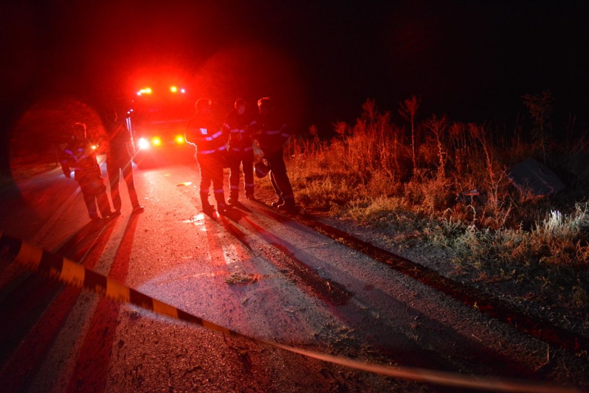 Pe la miezul nopții polițiștii efectuau măsurători pentru a stabili cauza producerii accidentului în condițiile în care cei aflați în mașină susțineau că nu știau ce s-a întâmplat fiindcă își butonau telefoanele.