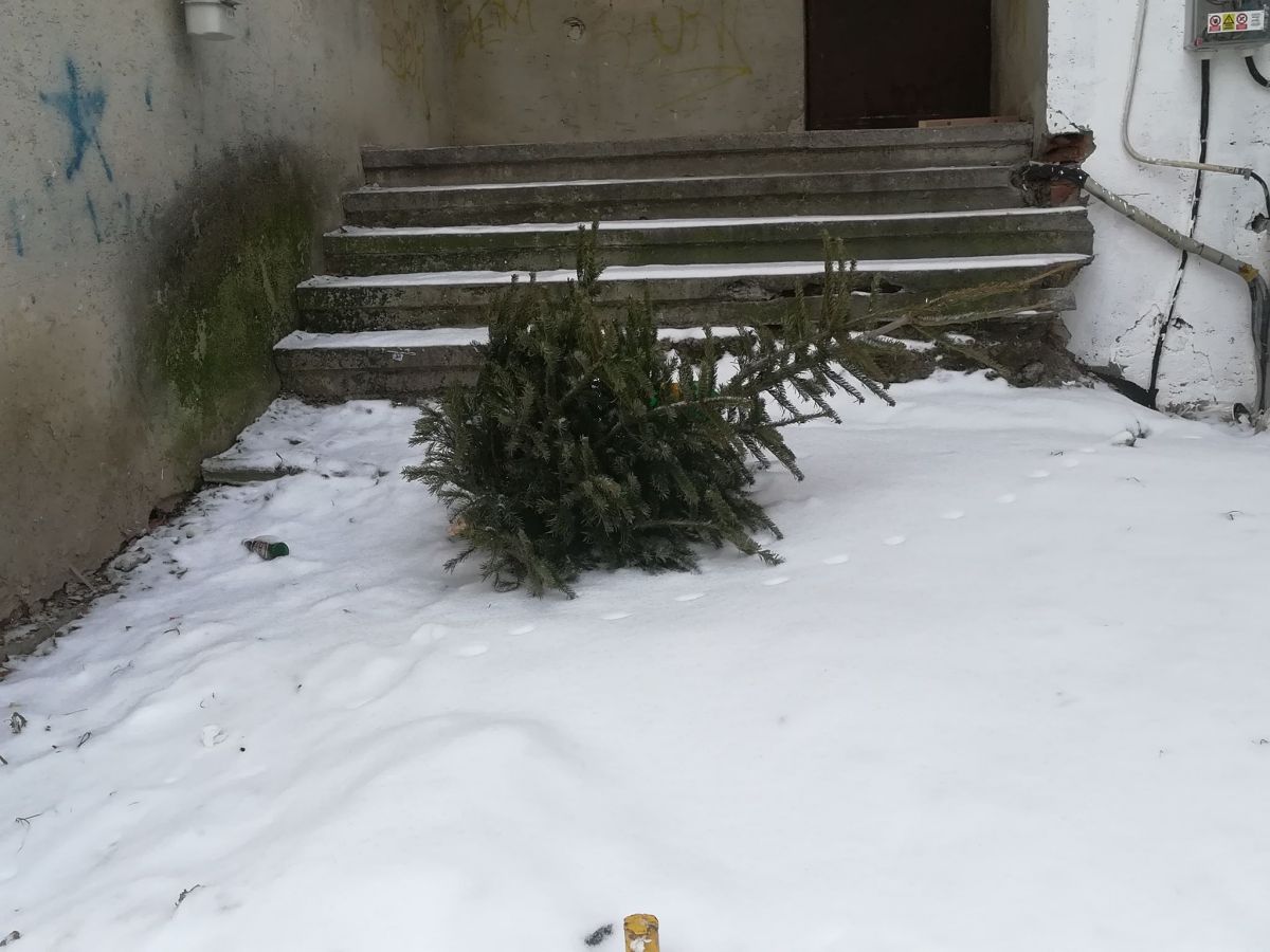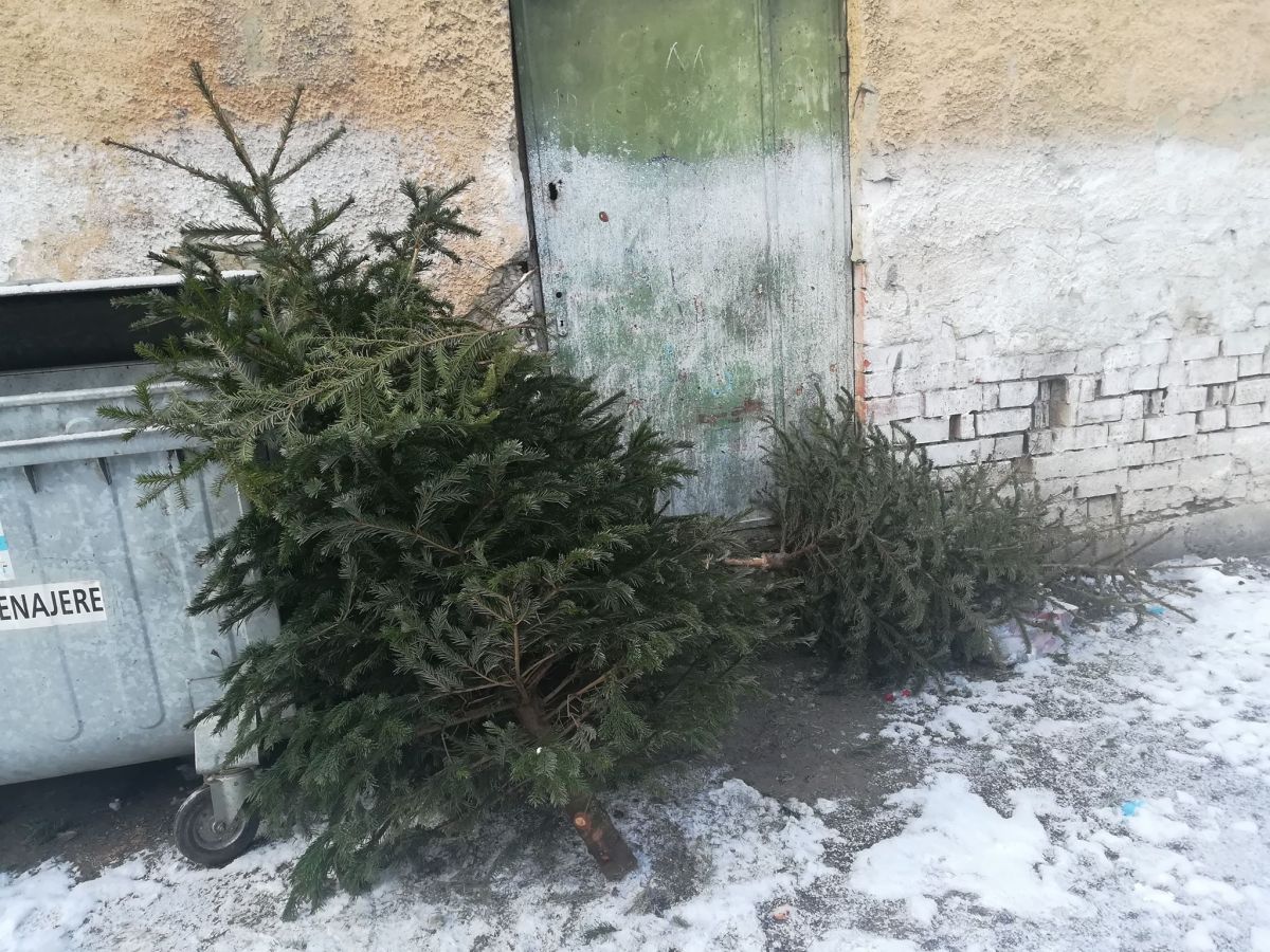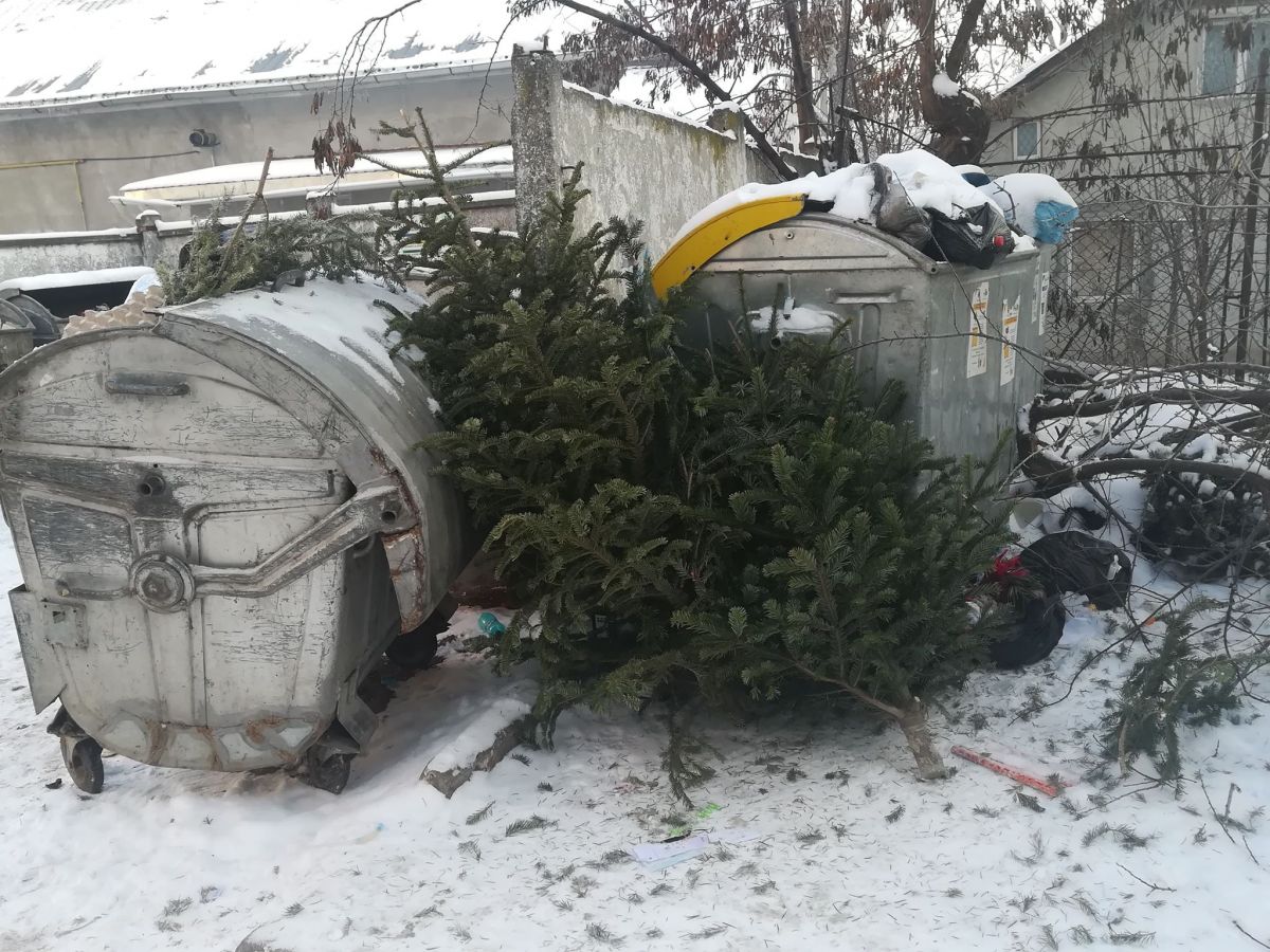 Dacă până mai ieri erau luminați și frumoși împodobiți, astăzi erau pur și simplu aruncați. Fiecare a lăsat pomul de Crăciun unde a crezut de cuviință. Ca atare, unii nici nu s-au mai obosit să îi ducă la containere, ci i-au lăsat aruncați aiurea prin cartier.
