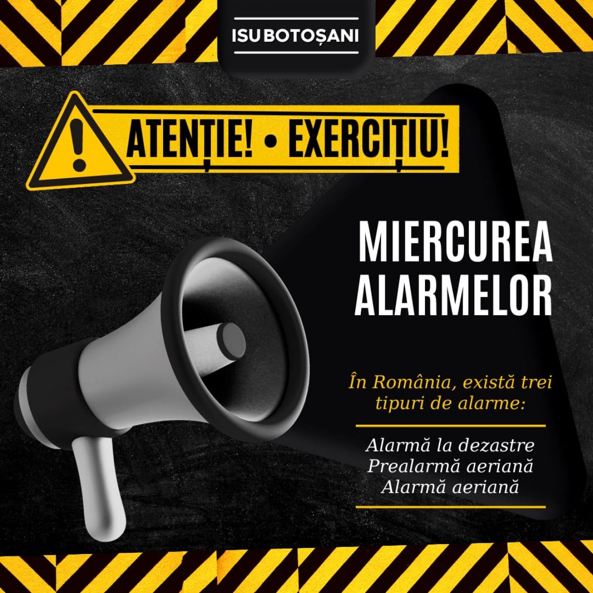 Exercițiul de alarmare publică „Miercurea alarmelor” se va relua începând cu 1 martie, la Botoșani.