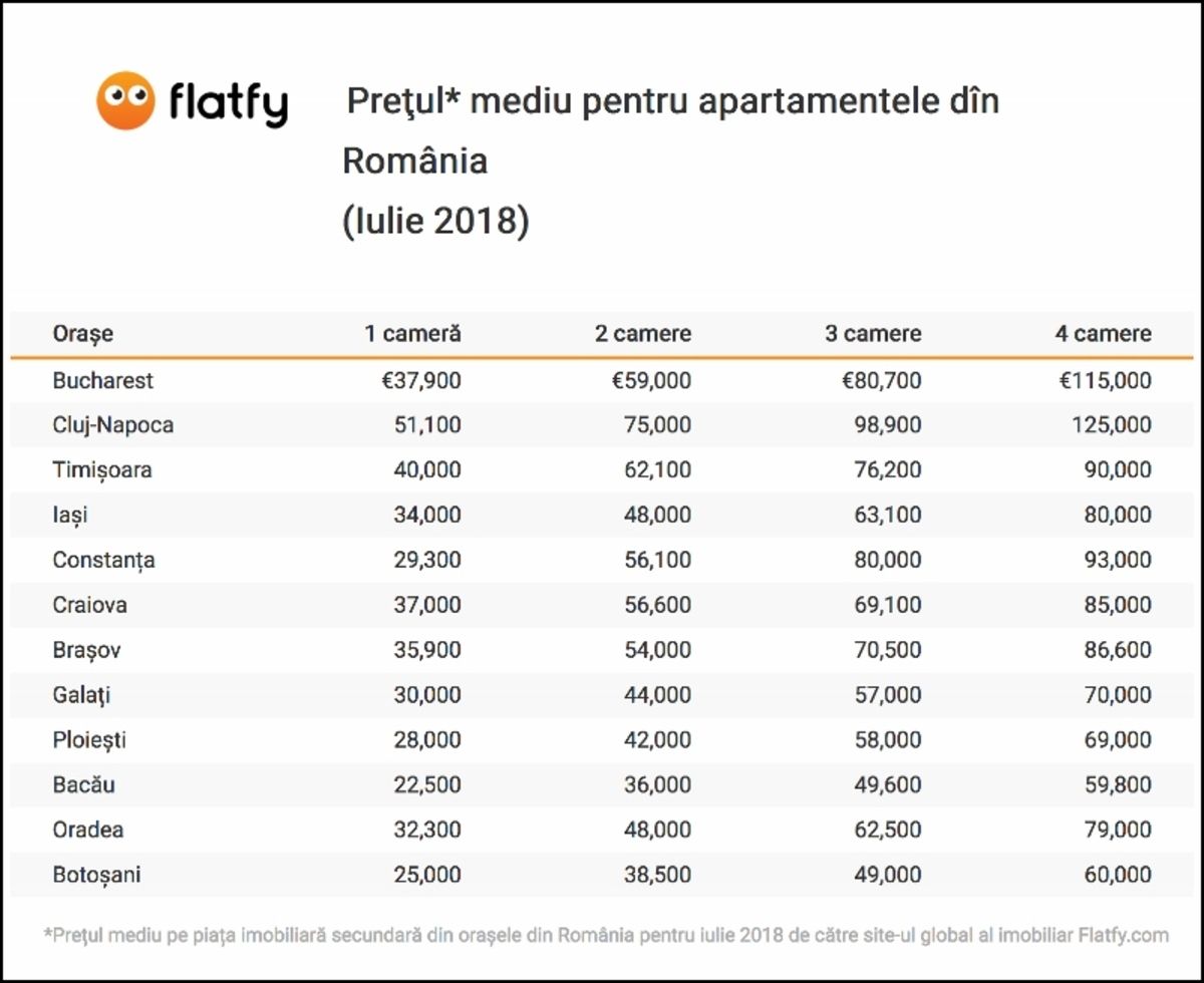 Potrivit Tribuna, în capitala României – București și în al doilea oraș după mărime din România – Timișoara se poate de cumpărat locuințe cu 2 camere pe piața secundară cu o sumă medie între 60.000 – 61.000 de euro.