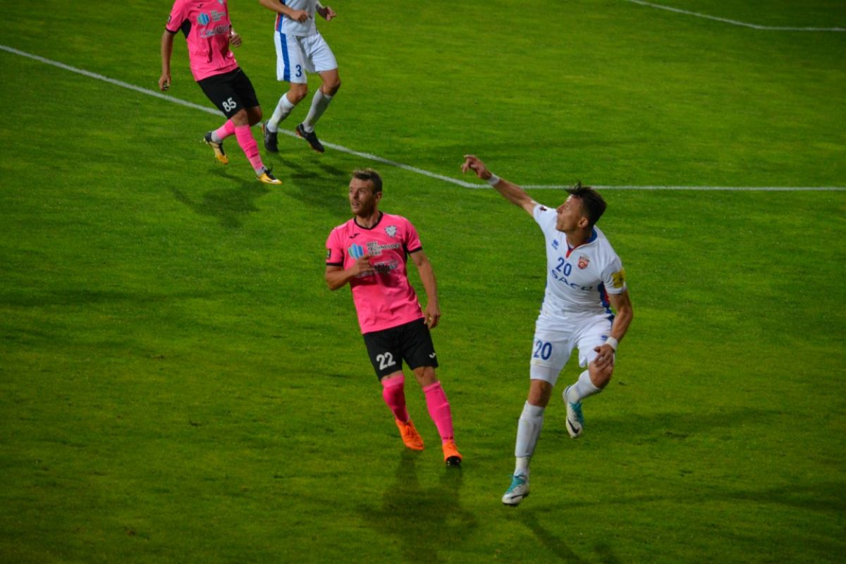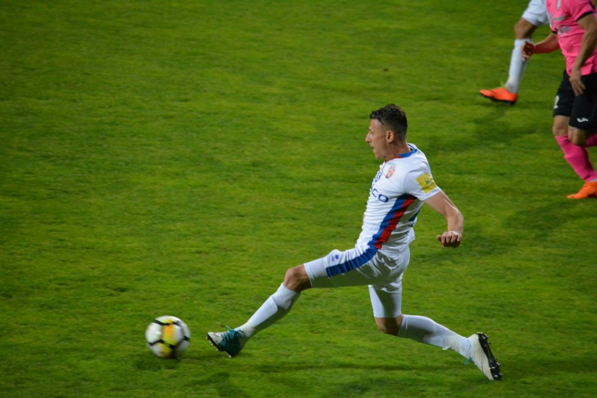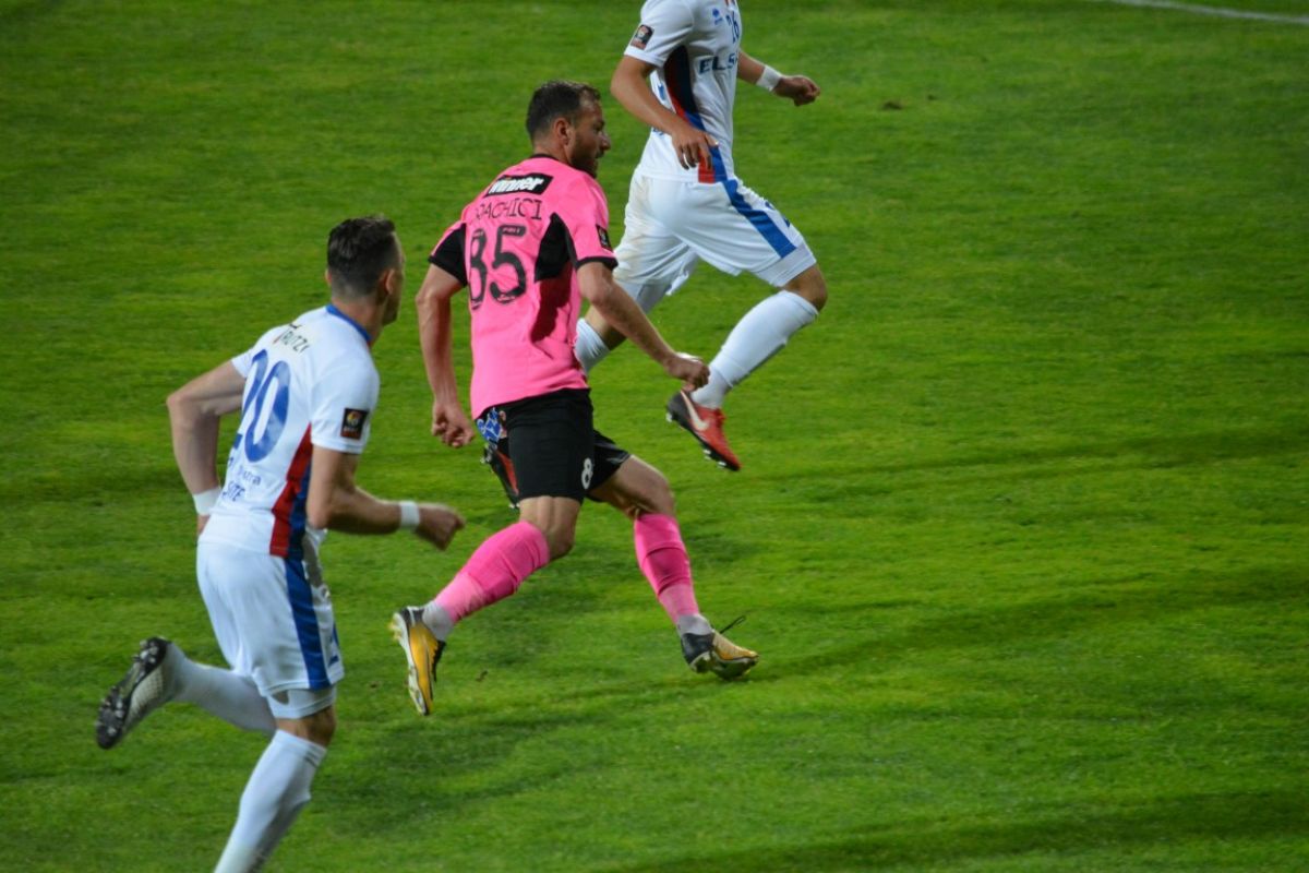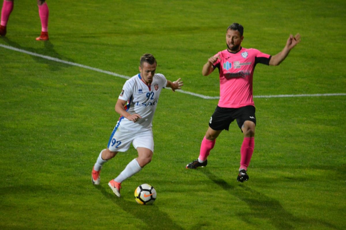 Singurul şut pe poartă al roş-alb-albaştrilor a fost de fapt o centrare ratată a lui Golofca, la o fază când balonul a căpătat un efect ciudat.