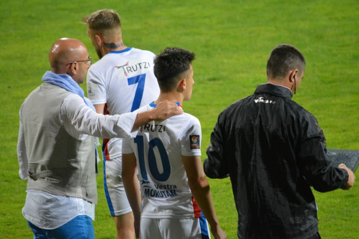 Costel Enache a început meciul fără un vârf clasic, dar cu trei fundaşi centrali. Iată jucătorii utilizaţi:
