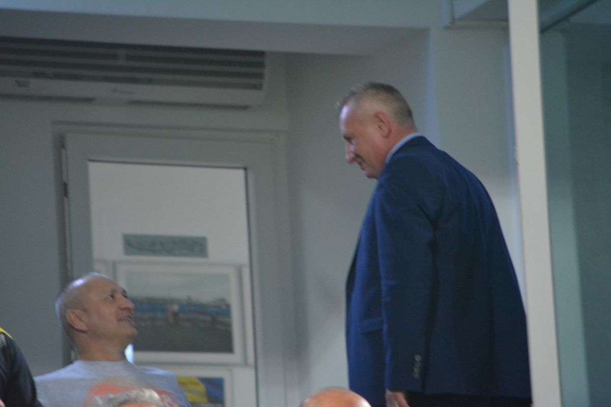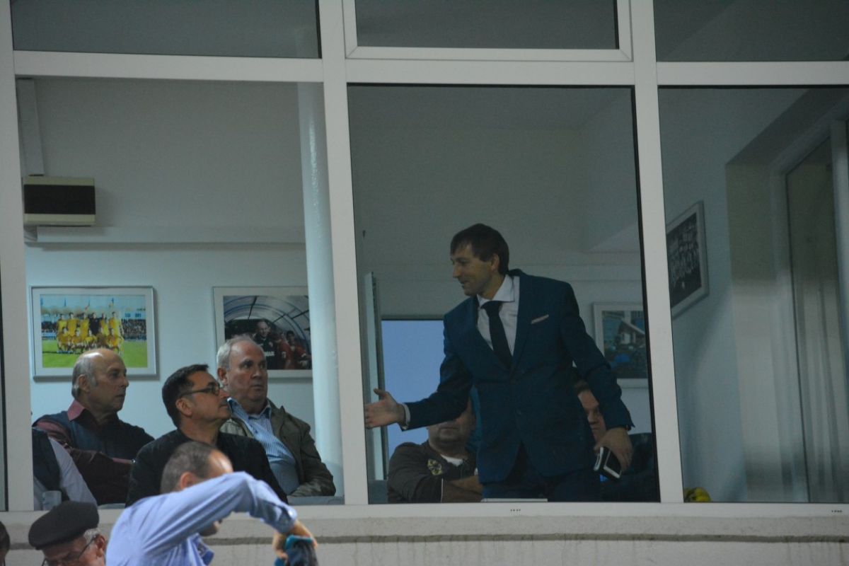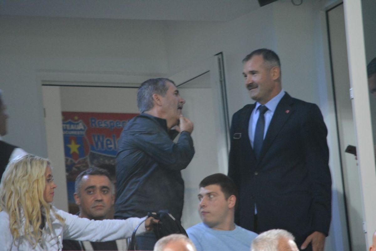 Cristian Roman, fericit după ce obţinut nominalizarea PNL pentru o nouă candidatură, s-a întreţinut cu Valeriu Iftime, preşedintele grupului „Elsaco”, după care a mers în loja ocupată de foşti şi actuali lucrători în Poliţie şi Justiţiei.