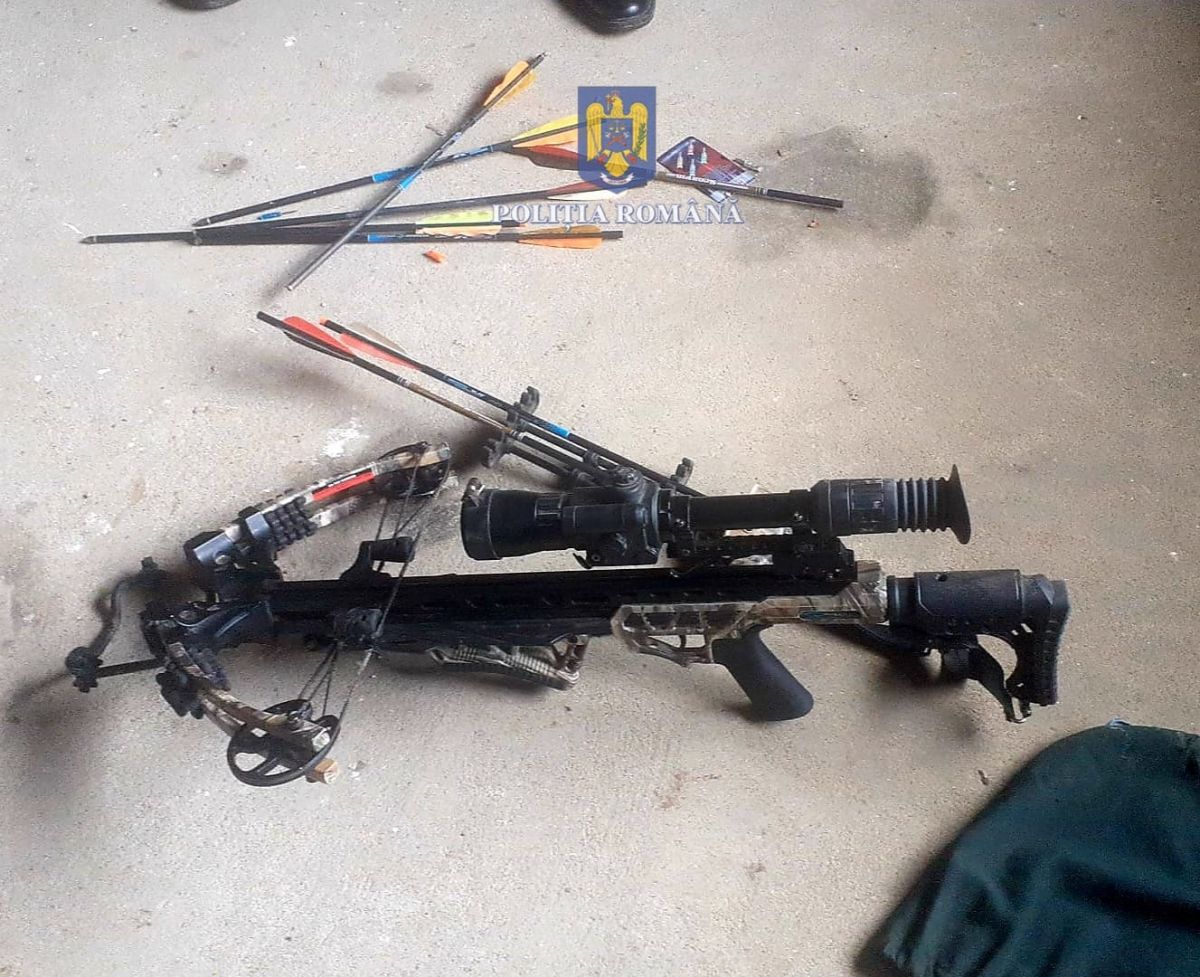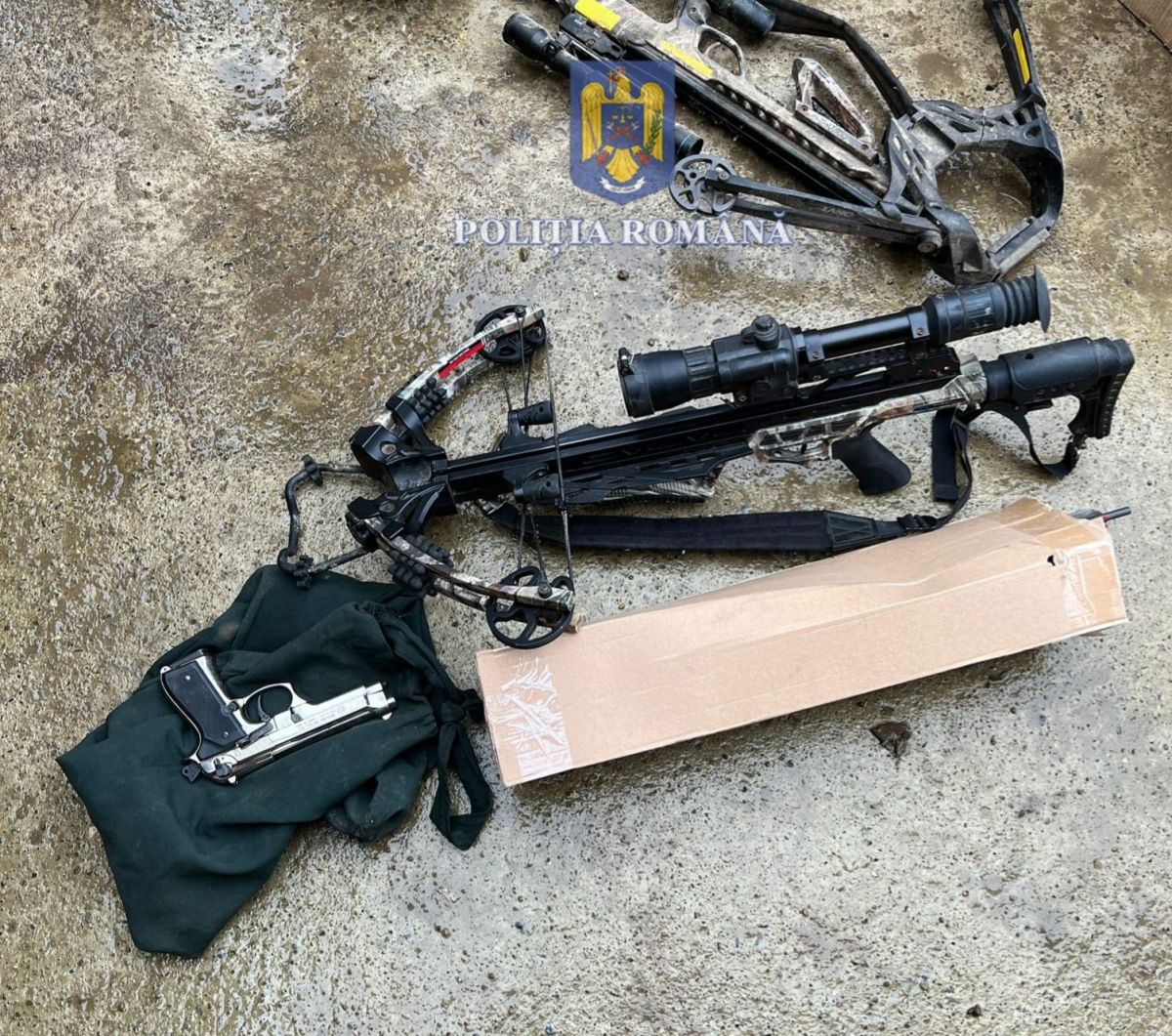 Cu prilejul perchezițiilor au fost identificate și ridicate în vederea continuării cercetărilor două arbalete cu lunetă prevăzute cu 26 de săgeți cu vârf, 500 de diablouri și o armă neletală supusă autorizării, despre care persoana percheziționată a declarat că ar fi procurat-o dintr-o altă țară.