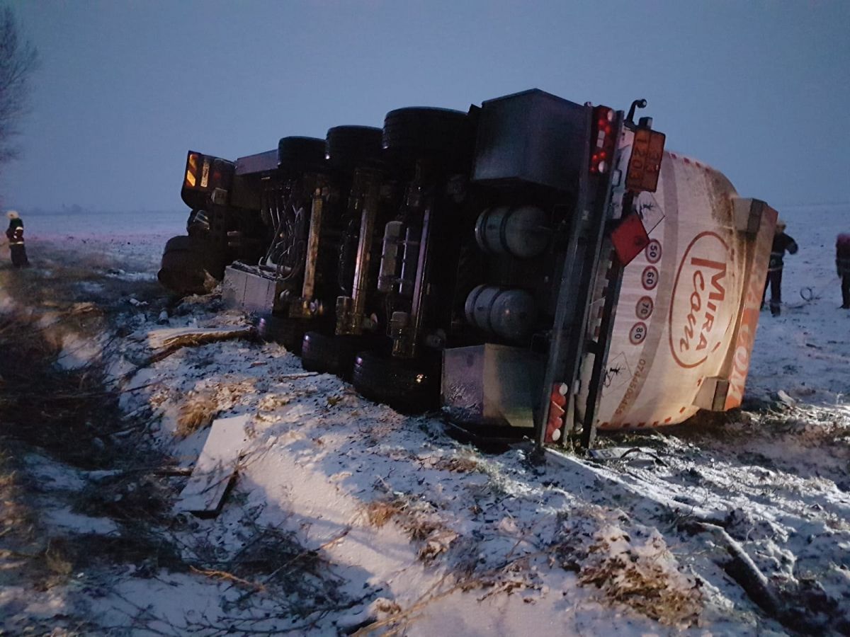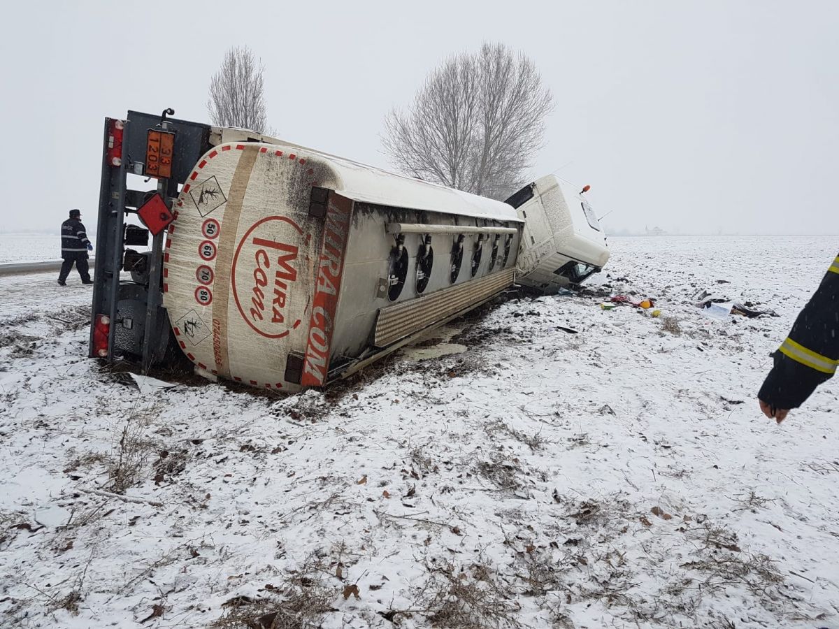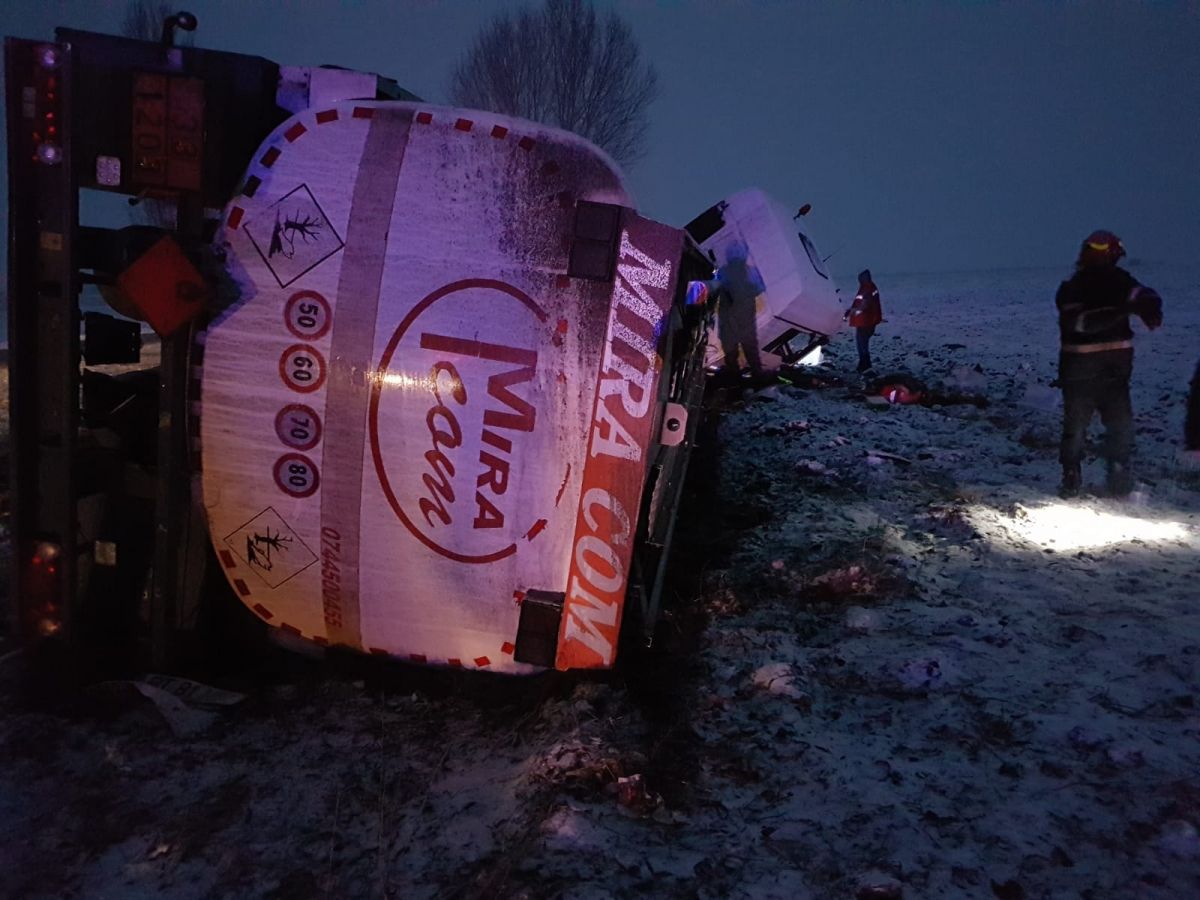 A fost panică totată după ce o cisternă s-a răsturat pe marginea drumului,