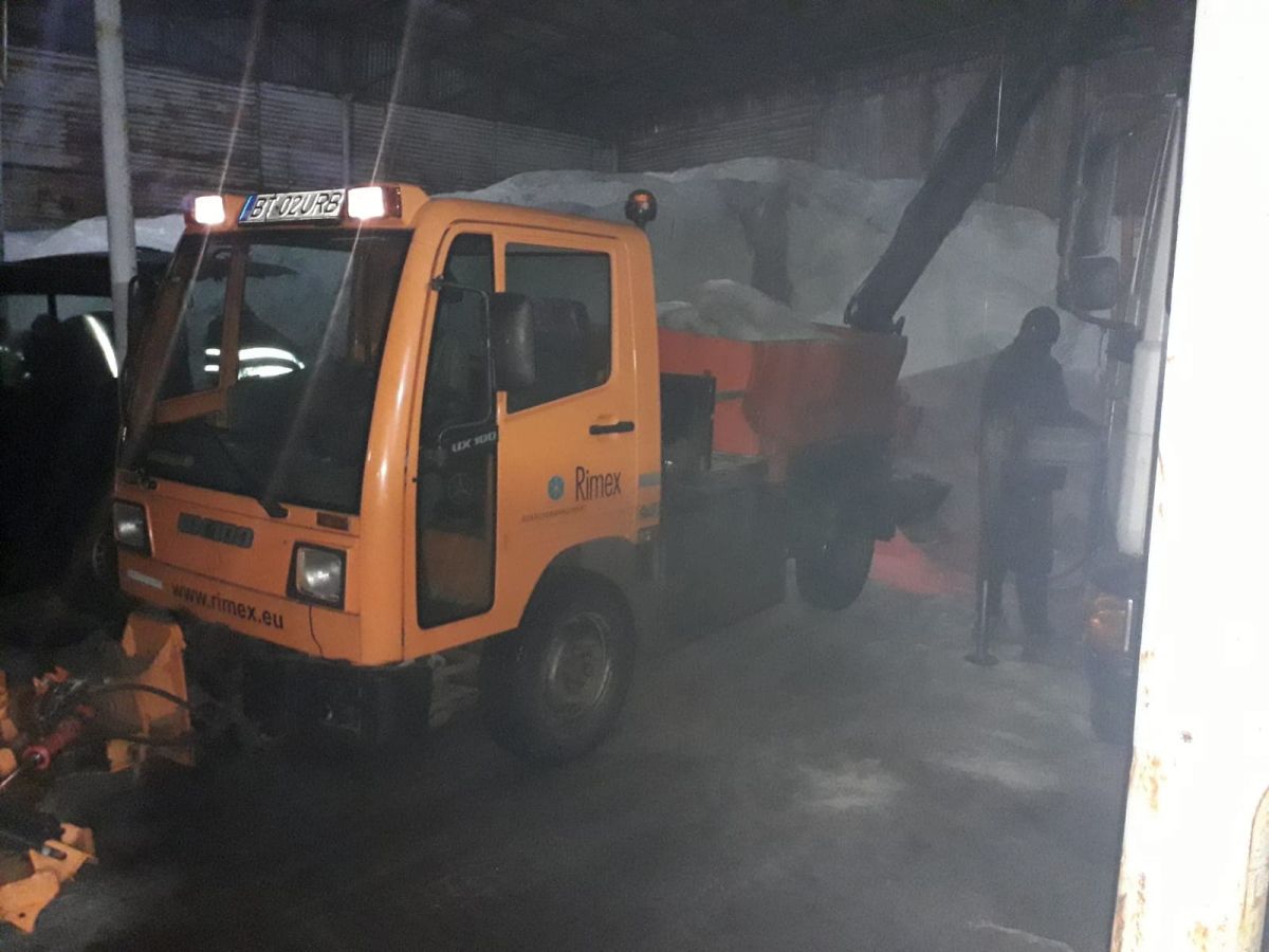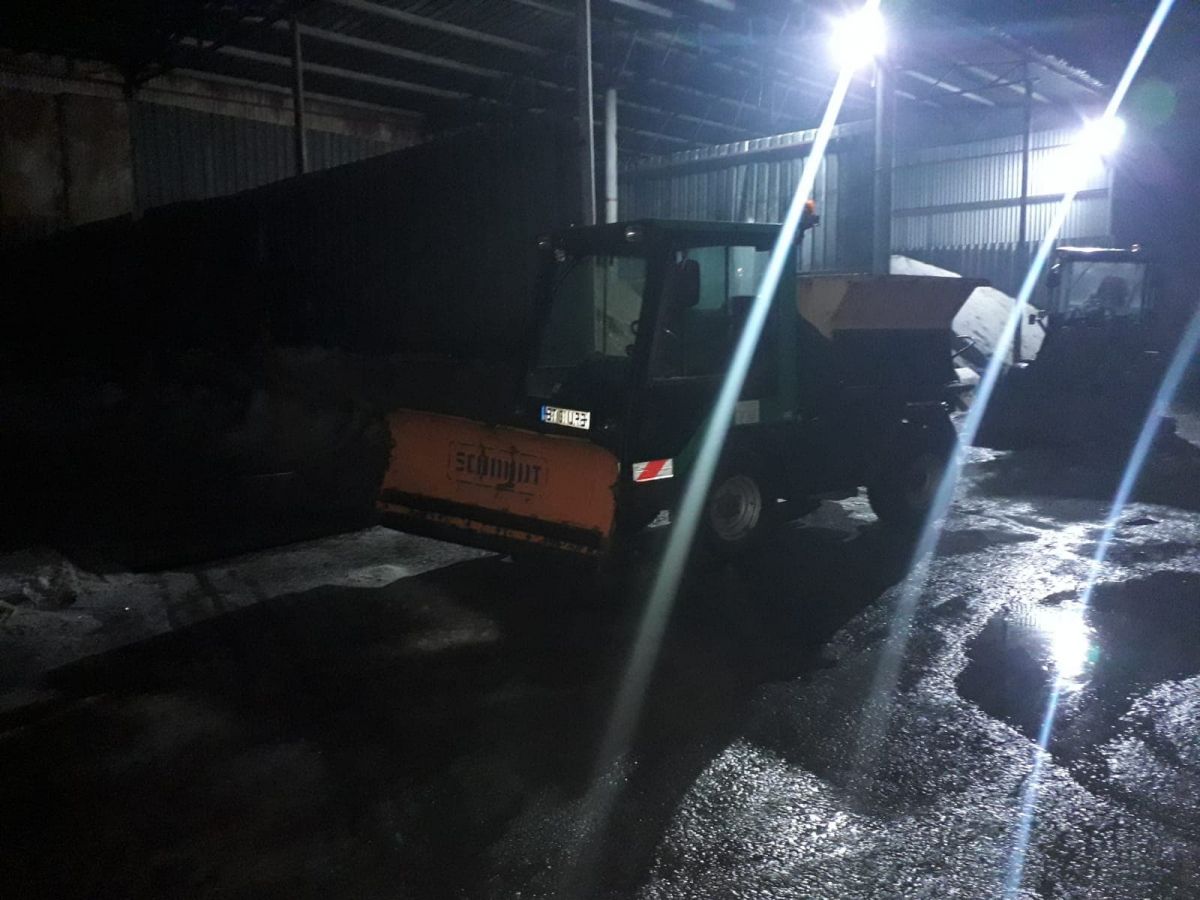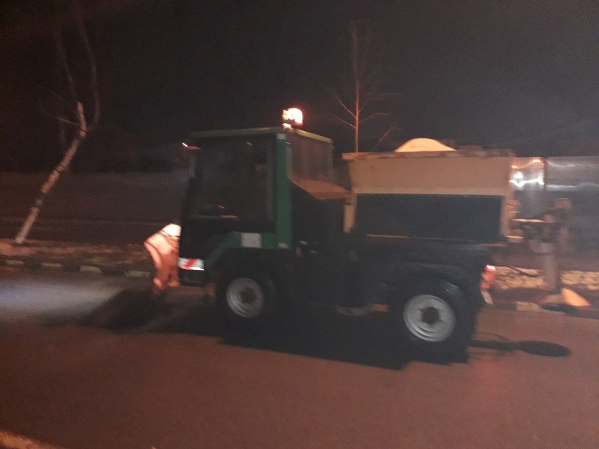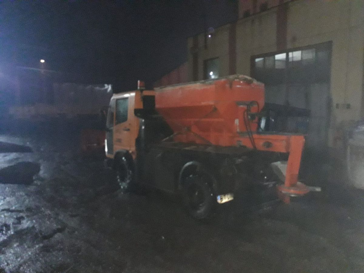 Alte două utilaje patrulează pe străzile orașului și aruncă cu material antiderapant. Sunt prioritare intrările în oraș precum și sensurile giratorii.