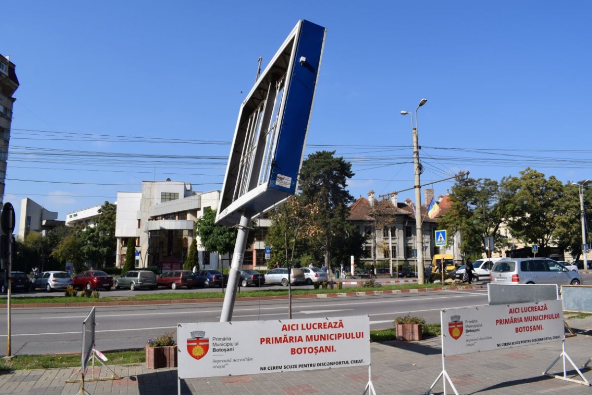 Încă de vineri, conducerea Primăriei Botoșani a tras un semnal de alarmă cu privire la un panou publicitar care stă înclinat și poate fi văzut ca un pericol public asupra trecătorilor și chiar a mașinilor.