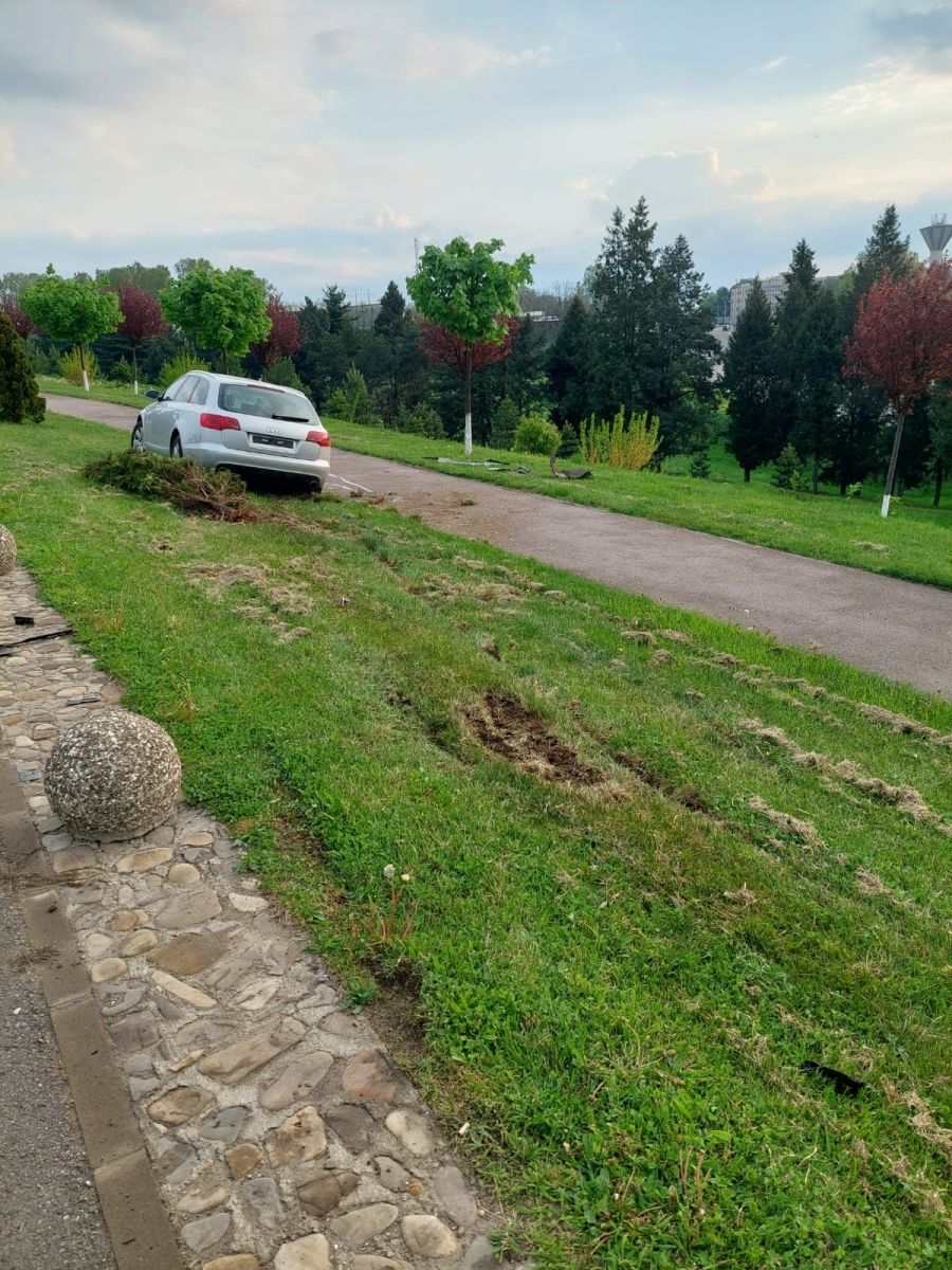 Tânărul care a fost depistat cu această alcoolemie care este apropiată de starea de comă se afla la volan, pe una dintre aleile Parcului de Agrement Cornișa. Pusese la pământ un brăduț și lăsase urme adânci pe spațiul verde la momentul în care a pierdut direcția.