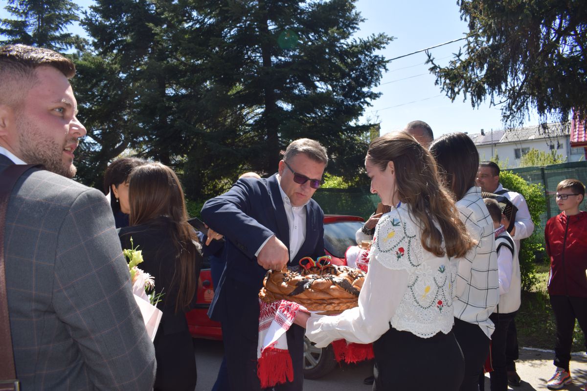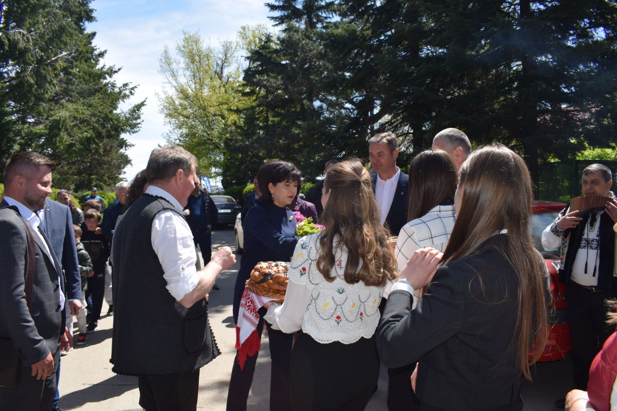 Pleiada pesedistă a fost primită cu flori, pâine și sare dar și un pahar de vin cel mai probabil. Și cu muzică specifică pe fundal.