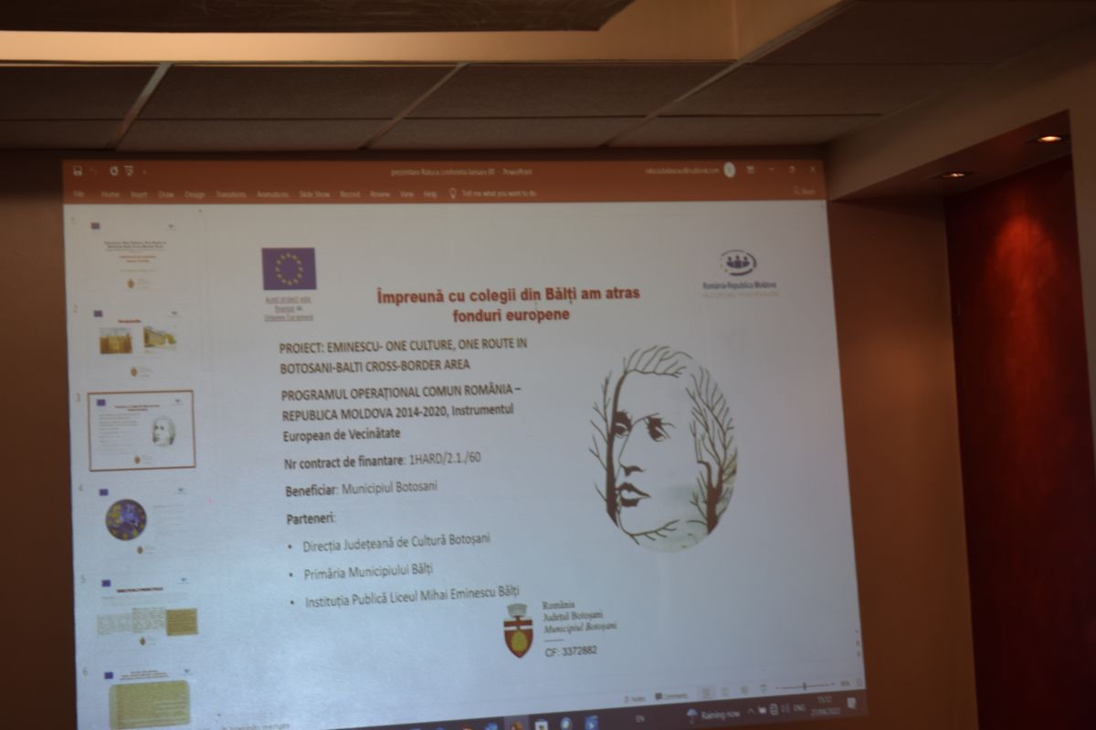 În sala George Enescu a Hotelului Rapsodia a avut loc conferința de lansare a proiectului „Eminescu: o cultură, o rută în zona transfrontalieră Botoşani – Bălți”