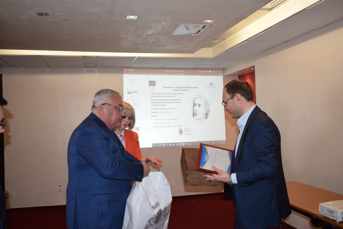 „Este o zi importantă pentru ambele comunități. Proiectul acesta are o importanță deosebită pentru municipiul Bălți deoarece, dacă în municipiul Botoșani orice loc este îmbibat de Eminescu și vorbiți de brandul cultural Mihai Eminescu, în Bălți noi creăm această rută. Prin acest proiect frumos avem de câștigat toți și avem încă foarte multe lucruri de realizat în comun”,