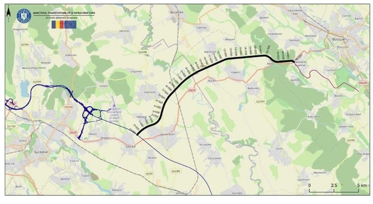 Președintele CJ Suceava a arătat că lungimea drumului expres dintre cele două municipii reședință de județ va fi de 20 de kilometri, va avea două noduri rutiere, patru poduri, șase subtraversări și va face legătura și cu zona aeroportului.