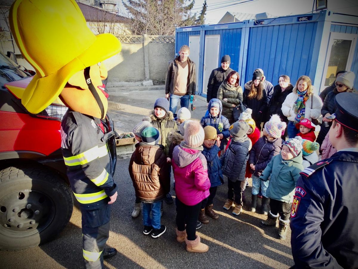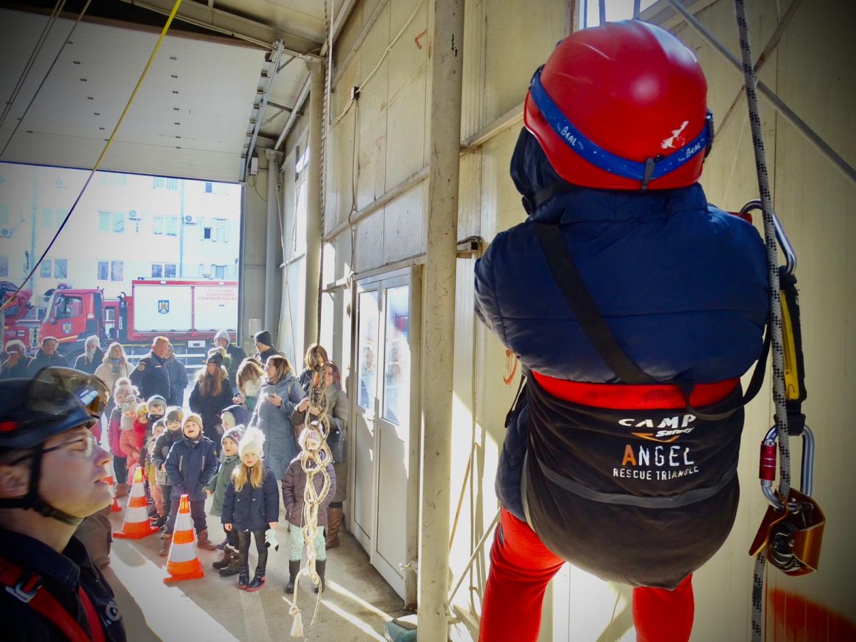 Astfel, ei au avut ocazia să vadă îndeaproape autospecialele folosite în misiunile operative și au aflat informații utile cu privire la modul în care trebuie să se comporte pentru a preveni situațiile de urgență. Autospeciala pentru intervenție și salvare de la înălțime a fost unul dintre punctele de atracție, copiii demonstrând că nu au frică de înălțime. Aceștia au îmbrăcat haina de pompier, au urcat în autospecialele de intervenție, iar cei mai îndrăzneți au testat presiunea furtunelor ca și când ar fi stins un incendiu.