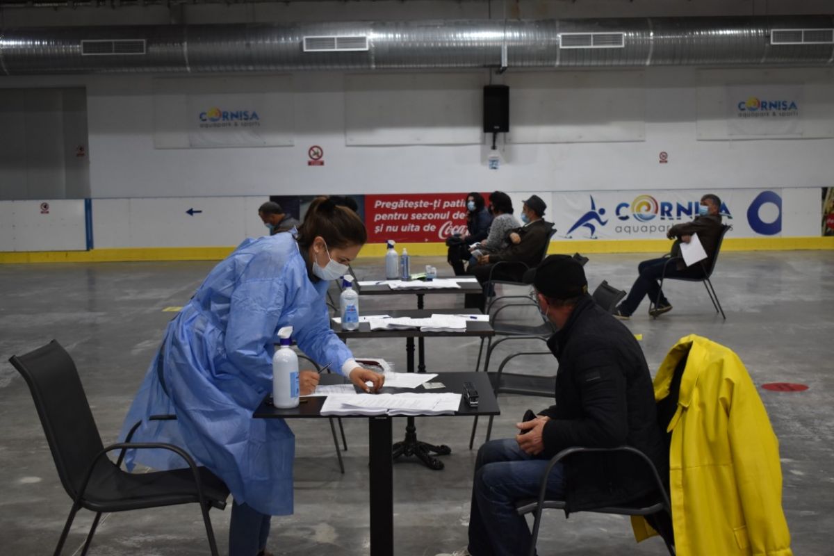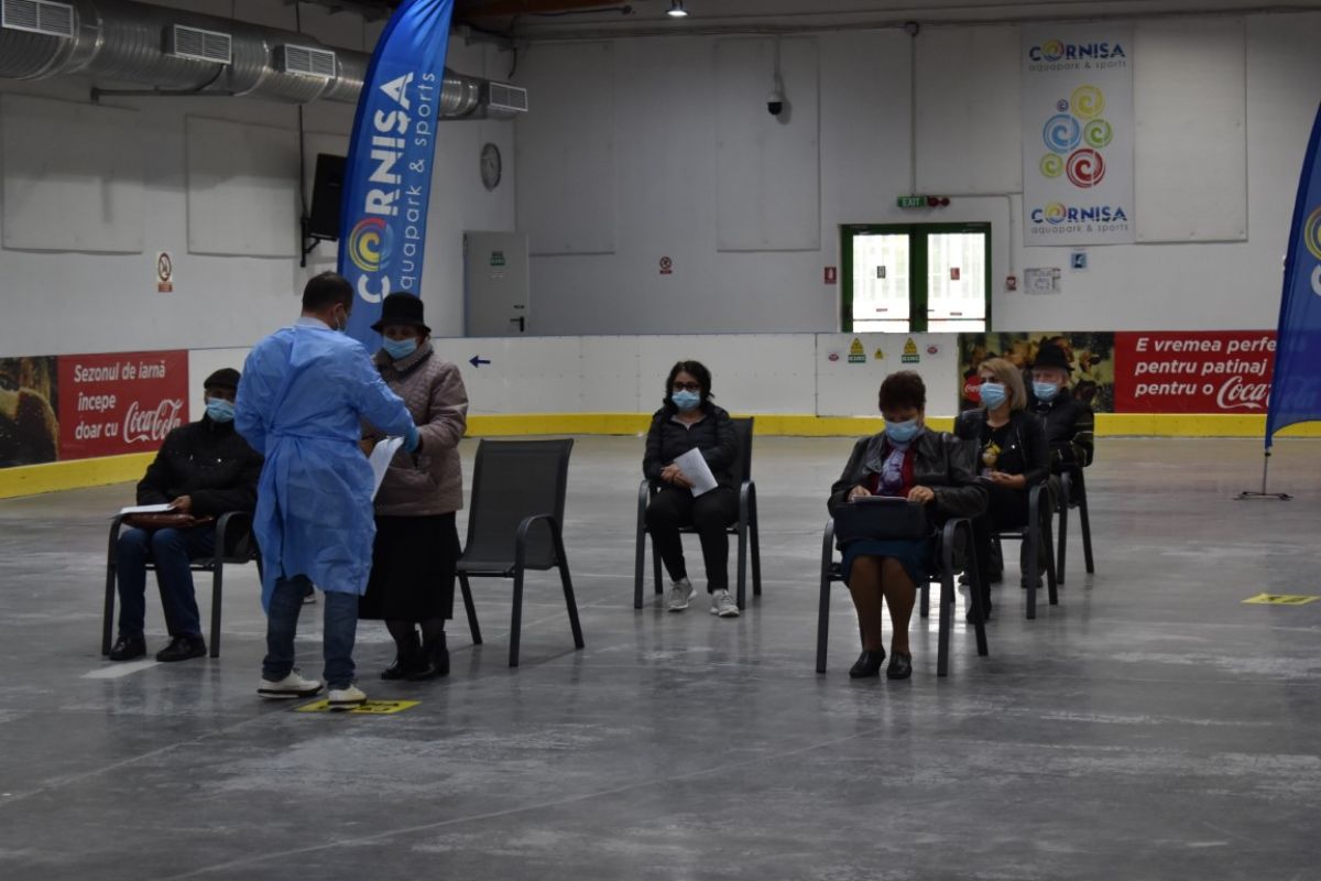 La Cornișa, în centrul amenajat în incinta patinoarului, sunt deschise două fluxuri pentru vaccinare cu Pfizer Bion Tech. Persoanele doritoare se prezintă doar cu buletinul pentru a primi prima doză, sunt înregistrate în sistem iar ulterior primesc un SMS cu data și locația la care vor face rapelul.