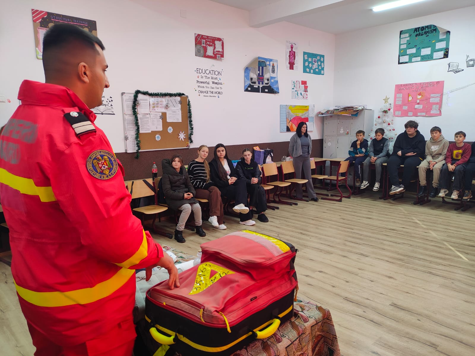 Totodată, elevilor le-a fost explicat modul corect de comportare în situația în care o persoană are nevoie de ajutor medical, precum și în cazul producerii unui incendiu, fiind implicați și în exerciții practice de evacuare.