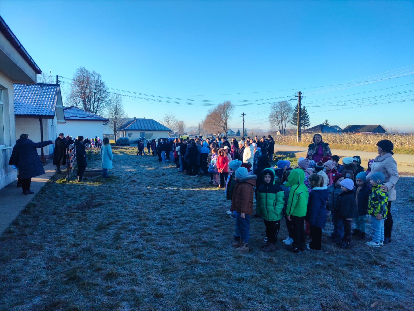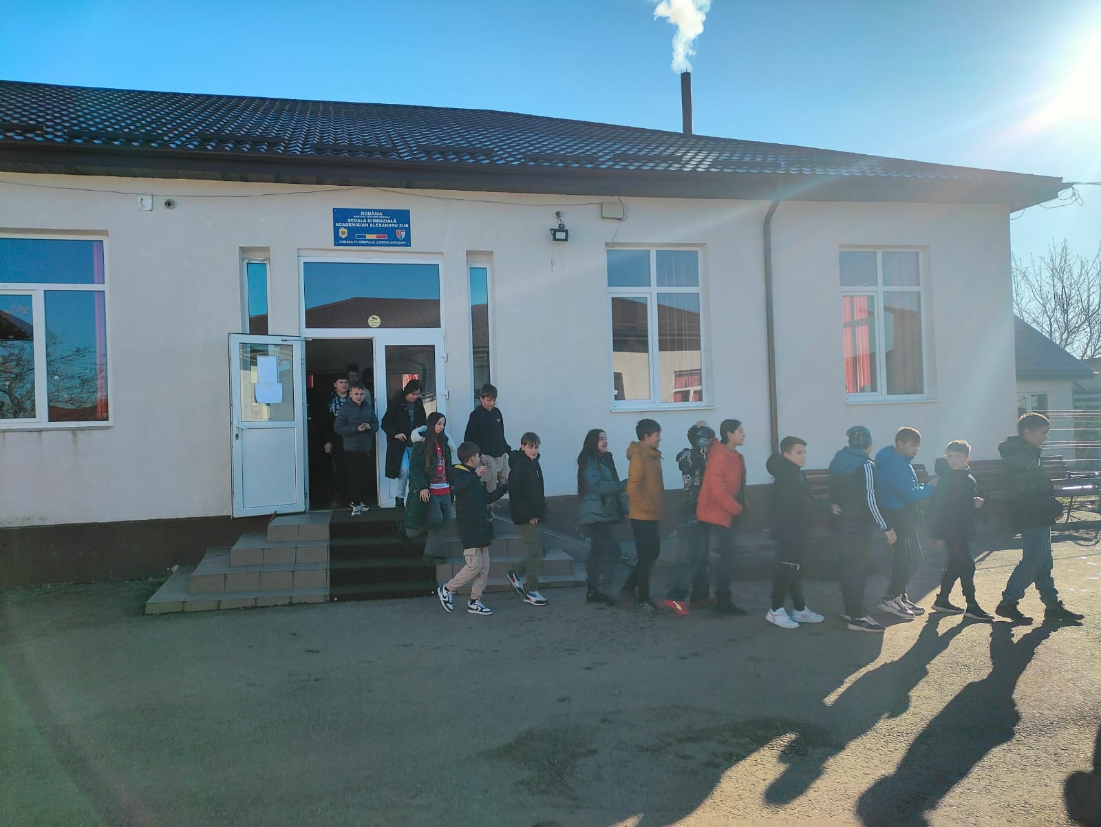Odată ajunși în curtea școlii, elevii s-au deplasat către locurile de adunare stabilite, unde cadrele didactice au efectuat prezența.