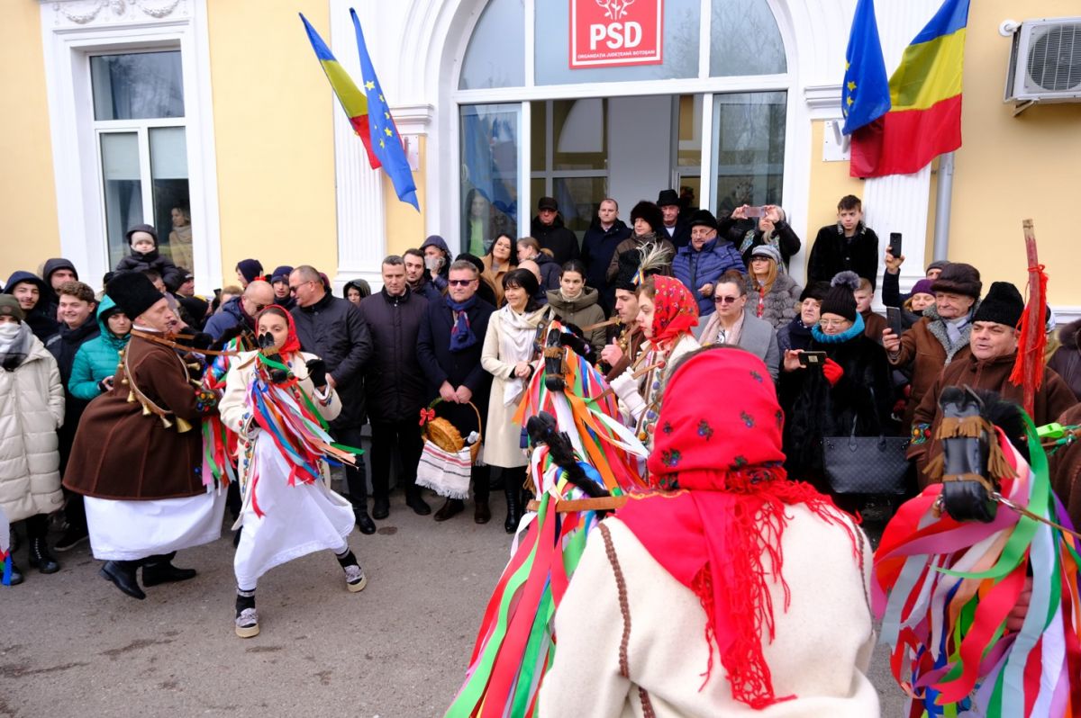 17 ansambluri din 14 localități din toate colțurile județului Botoșani au trecut pragul social-democraților botoșăneni, realizând un adevărat spectacol de datini și obiceiuri de iarnă. Au urat, au colindat, au semănat, așa cu au învățat din generație în generație, fiecare în locul lui de baștină.