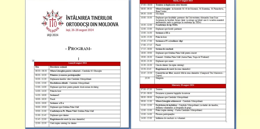 Departamentul Misiune pentru Tineret din cadrul Sectorului de Misiune al Arhiepiscopiei Iaşilor va organiza în acest an cea de a patra ediţie a evenimentului „Întâlnirea Tinerilor Ortodocşi din Moldova” (ITOM), în perioada 26 – 28 august 2024.