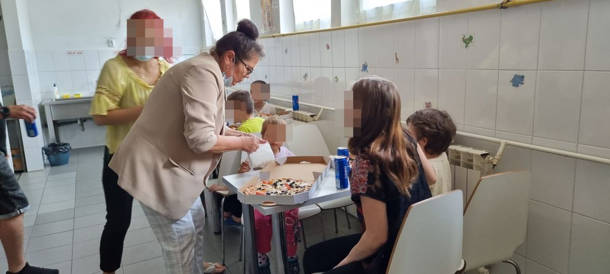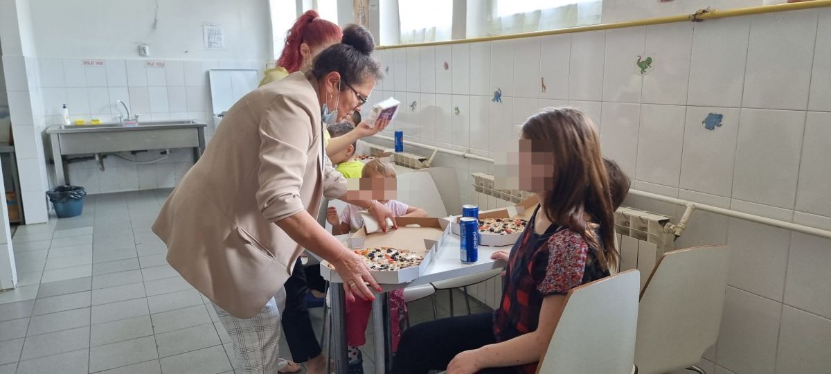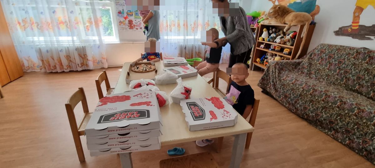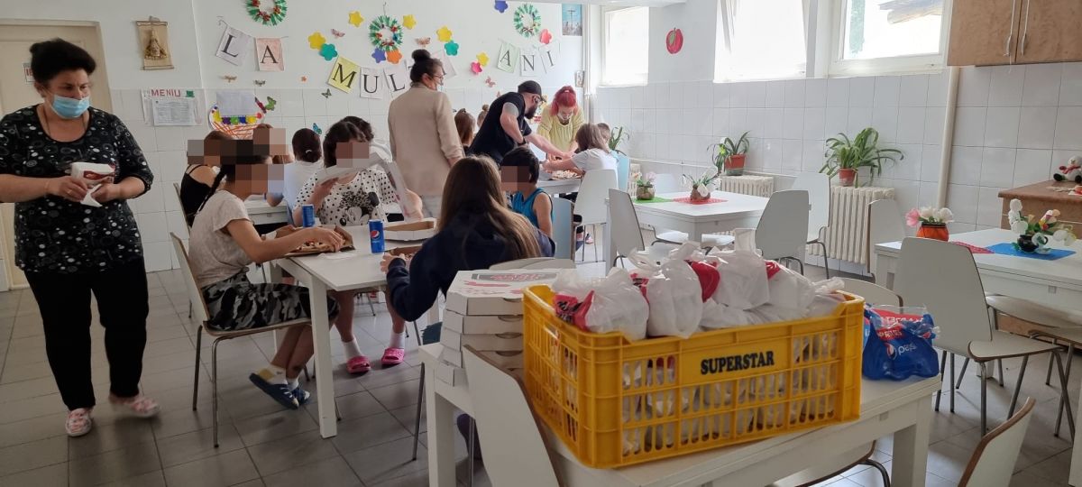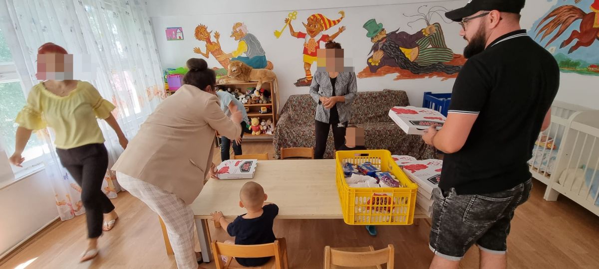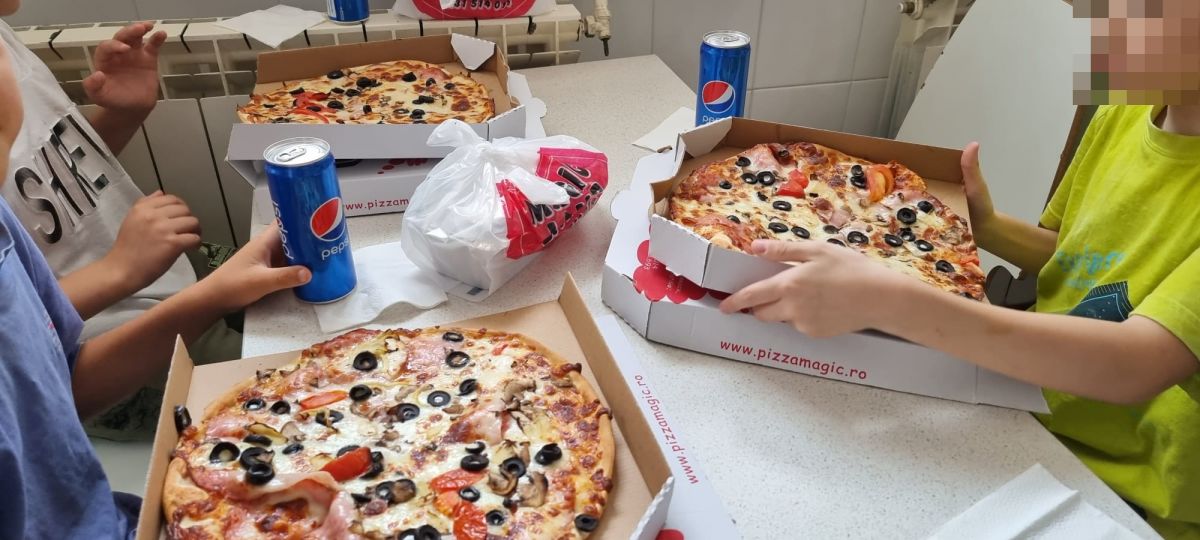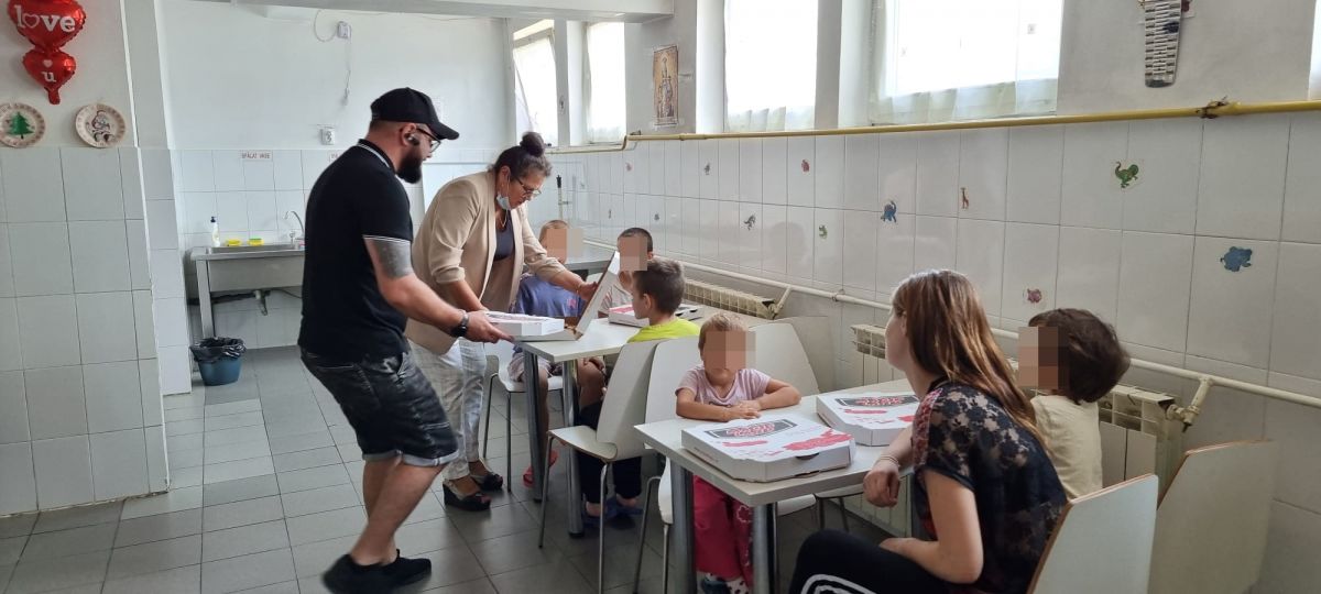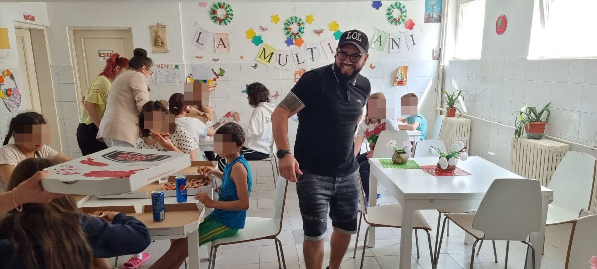 Cosmin a decis să bucure 38 de persoane oferindu-le câte o pizza, un suc și un desert. A apelat evident la Asociația Grup Civic, cunoscută pentru astfel de acțiuni de suflet, iar Daniel Câșlariu a reacționat imediat.
