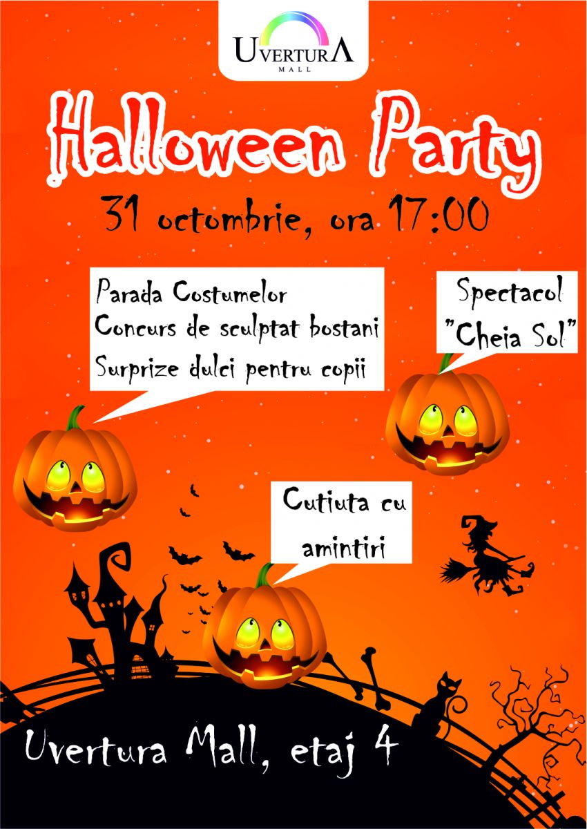 Luni, 31 octombrie, începând cu ora 12:00, Uvertura Mall dă startul petrecerii de Halloween, presărată cu multe surprize, voie bună și momente înfricoșătoare.