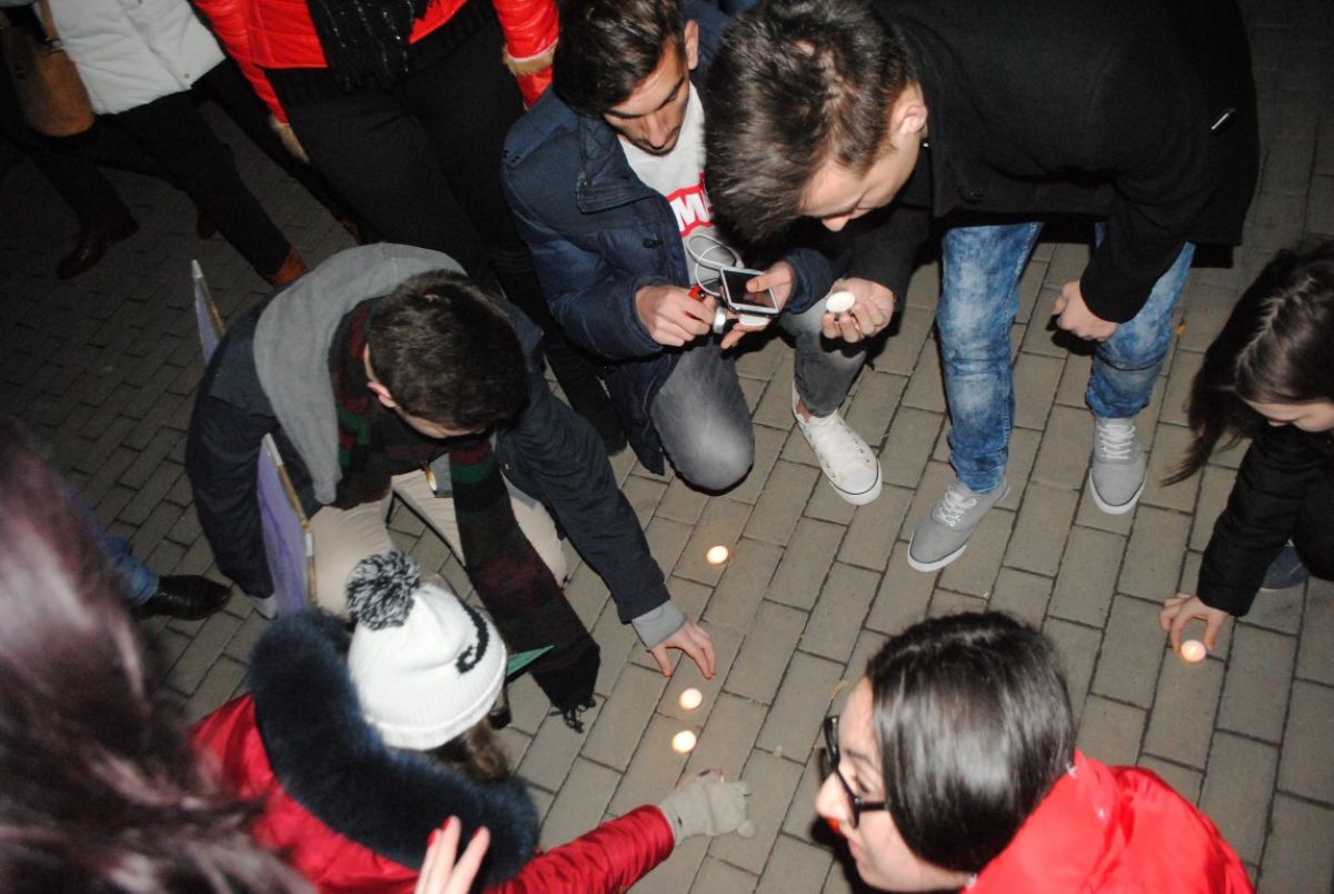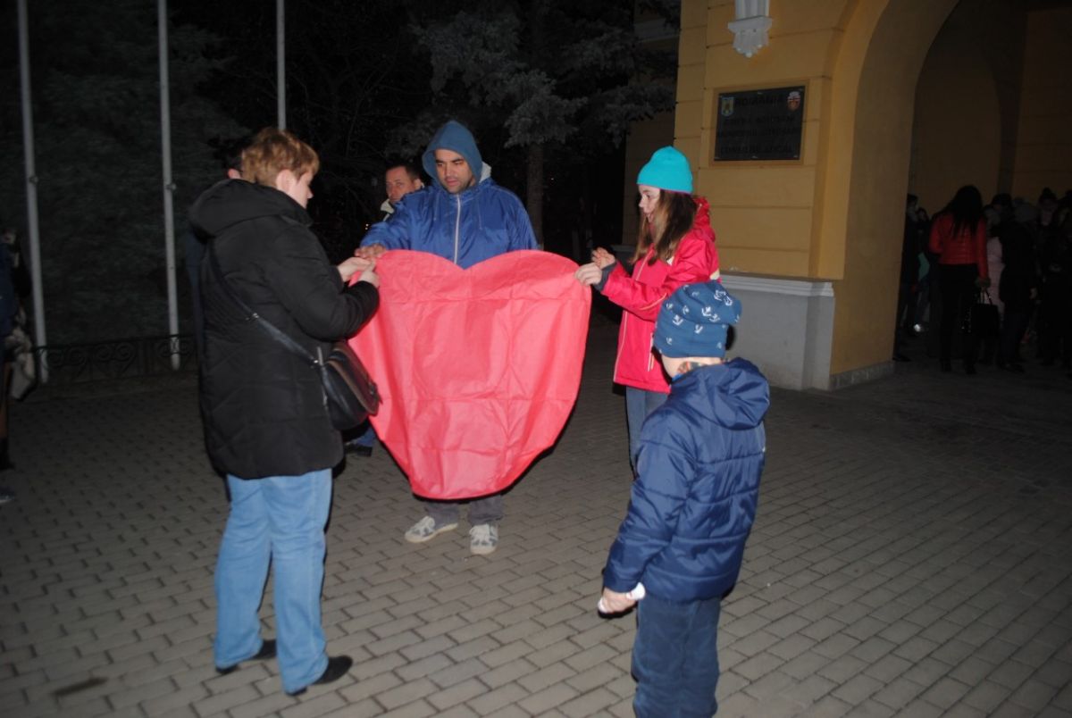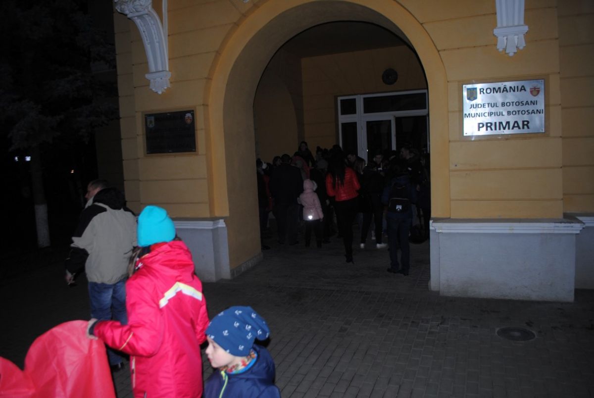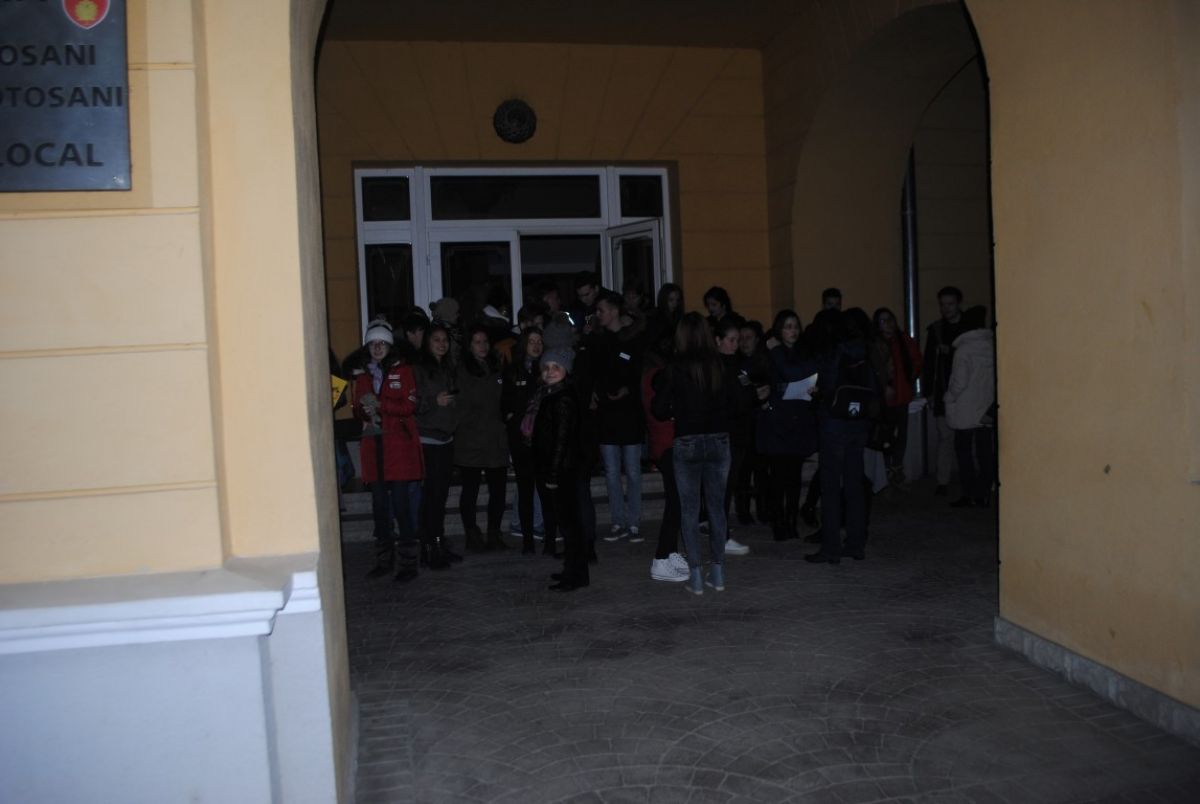 Zeci de tineri, voluntari din cadrul Asociației B-Right Media, elevi de la Școala 11, Liceul ”Elie Radu” și Palatul Copiilor, s-au adunat în fața Primăriei municipiului Botoșani pentru a marca această zi. Au venit bine îmbrăcați, dat fiind faptul că meterologii au anunțat un weekend răcoros și au adus cu ei materialul necesar. Chiar dacă evenimentul a fost programat să înceapă la ora 20.30, tinerii botoșăneni au ajuns mai devreme, motiv pentru care au fost invitați să se adăpostească pe holul Primăriei. La ora stabilită, s-au pregătit lampioanele și rând pe rând au fost înălțațe la cer. În paralel, pe asfalt s-au aprins lumânări, iar în mijlocul lor s-au pus pancarte cu diferite mesaje cum ar fi, de plidă, ”viața pe Terra depinde de NOI”. Printre cei prezenți s-a făcut remarcată și Ada Alexandrina Macovei, fost inspector școlar general, care i-a ajutat pe tineri să aprindă lampioanele. Acțiunea s-a încheiat la ora 21.30, iar înainte de a pleca, botoșănenii și-au făcut câteva fotografii pentru a imortaliza momentul.