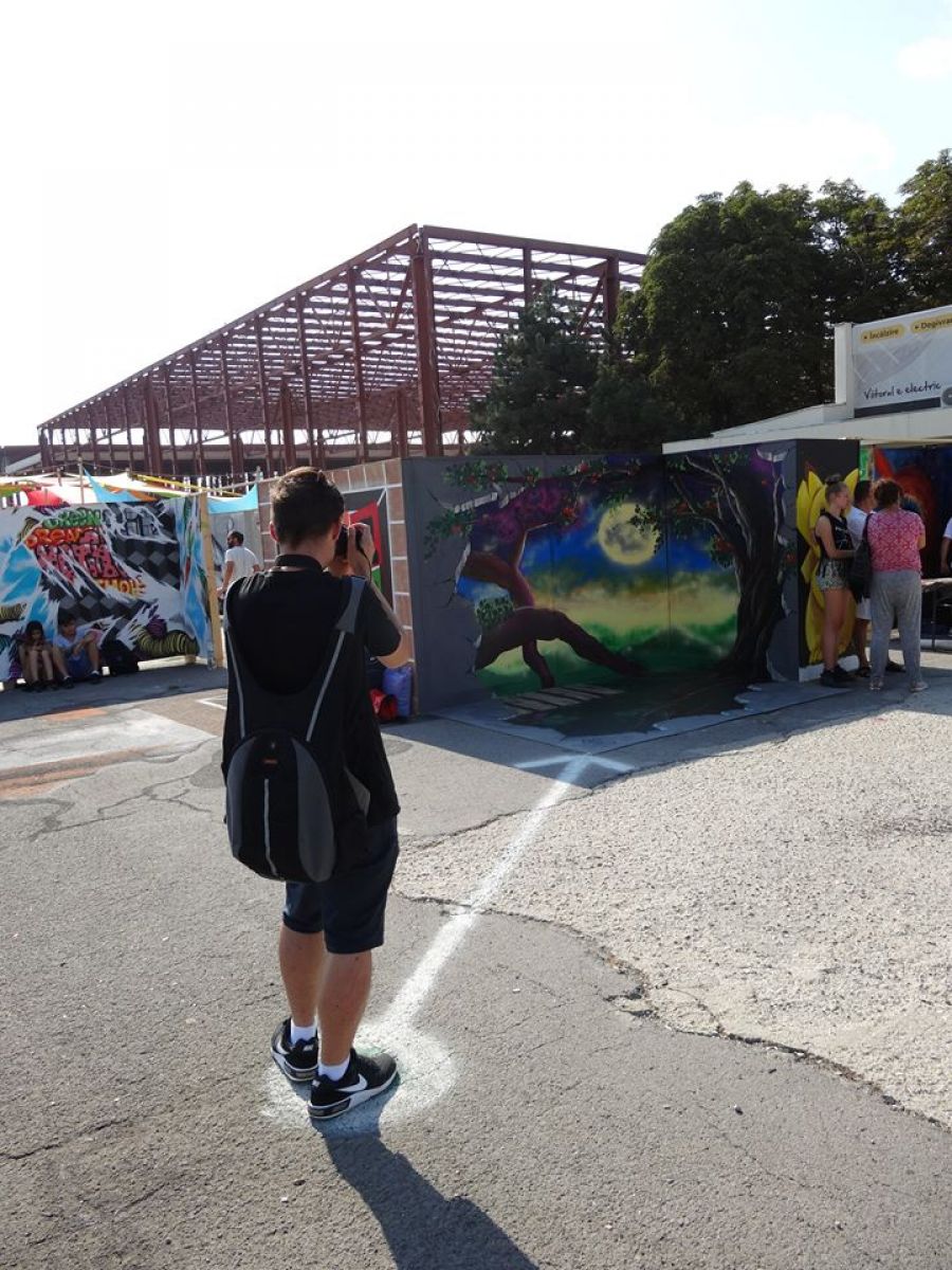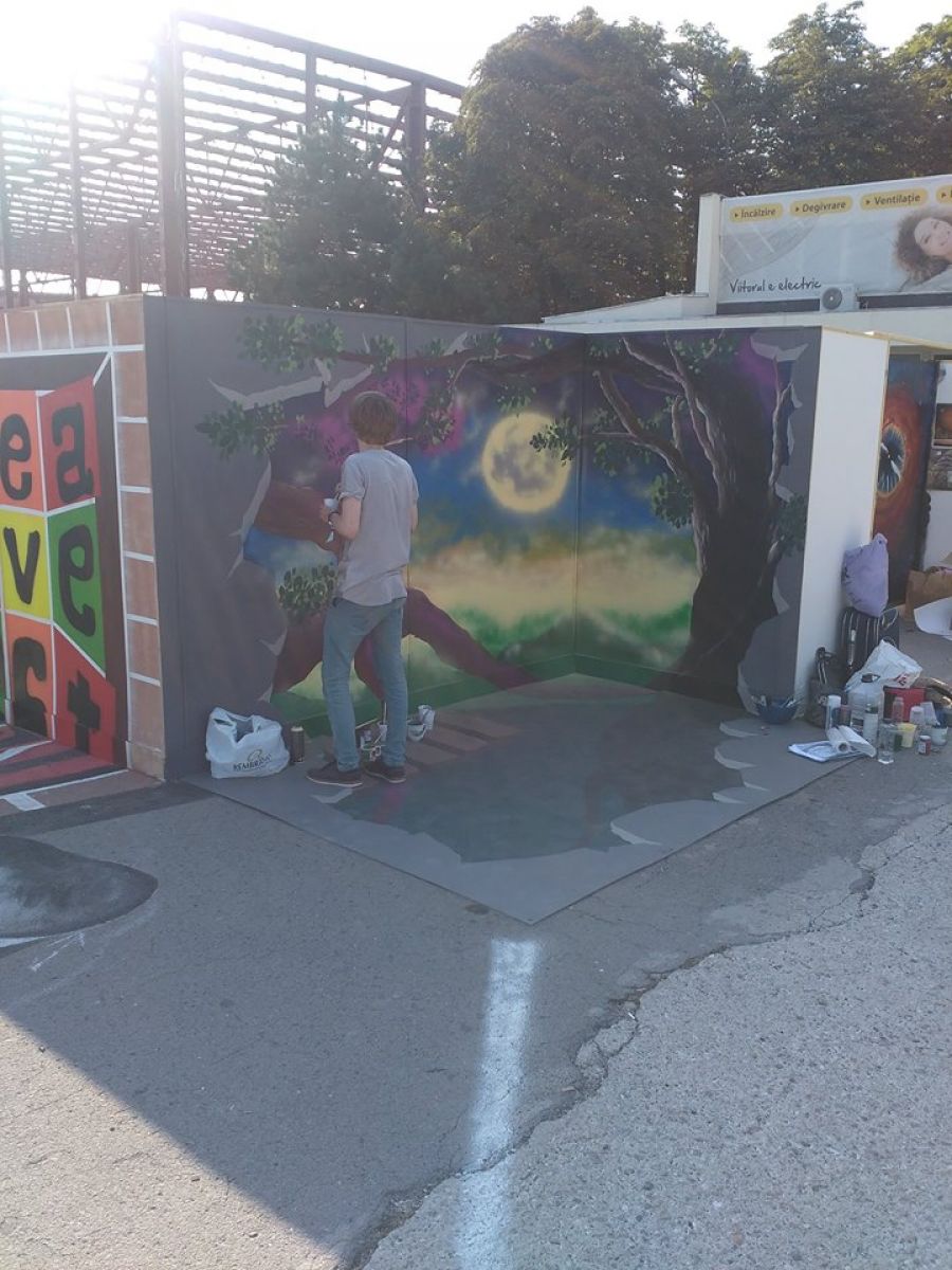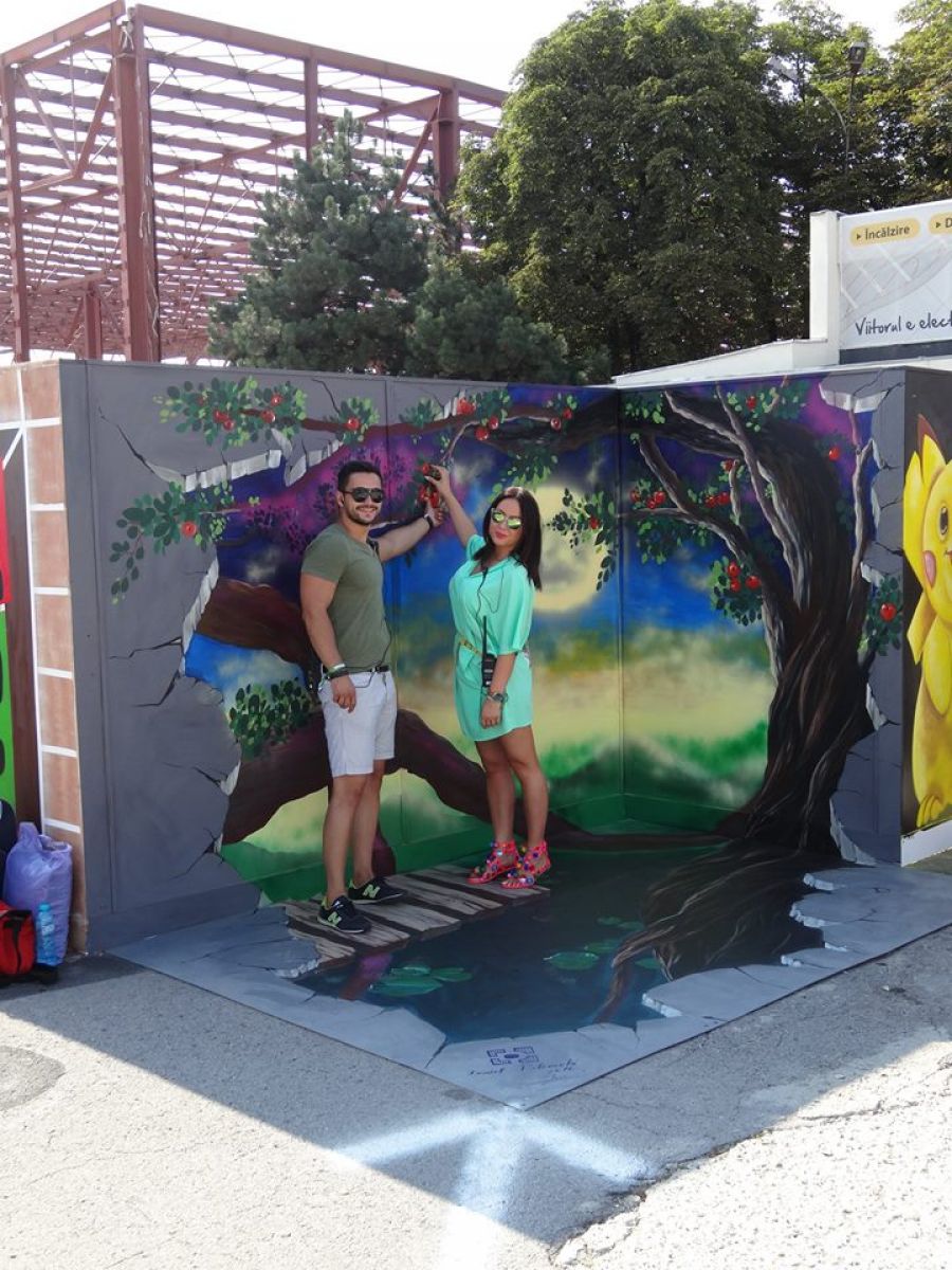 Mă amuzam, dar le-am arătat de unde trebuie privită lucrarea, punct pe care de altfel l-am evidențiat cu vopseluri și o linie cu săgeată îndreptată spre pictură. E un 3D în trei planuri, practic, sunt trei picturi 3D, care formează o singură imagine. Câțiva oameni m-au întrebat ce se întâmplă cu lucrarea, le-am spus că rămâne în proprietatea Creative Fest. De mai bine de doi ani nu am mai accept să pictez pe asfalt, asta pentru că pictura se deteriorează și mai târziu se șterge și mie îmi place ca arta mea să trăiască mult timp. Picturile mele sunt ca și niște copii, trebuie să am grijă să fie în siguranță.