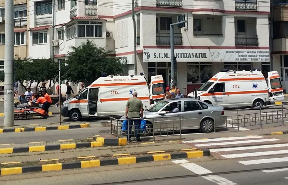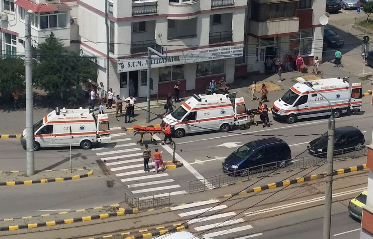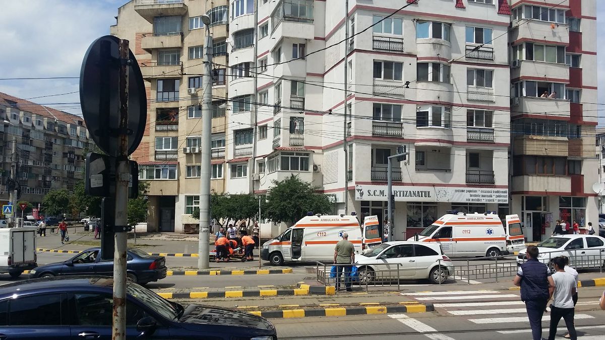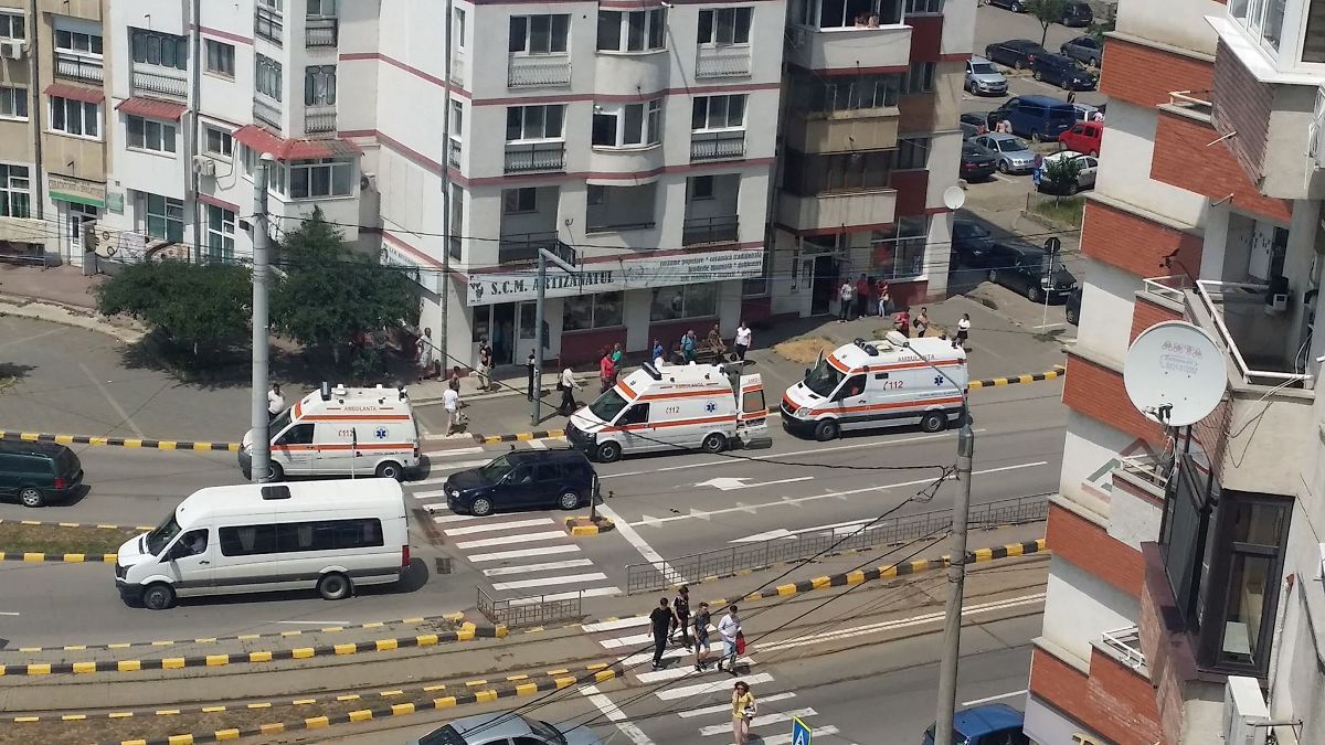 Un accident mai rar întâlnit a avut loc în urmă cu puţine minute în sensul giratoriu din apropierea bazarului, unde un pieton a fost lovit de o ambulanţă.